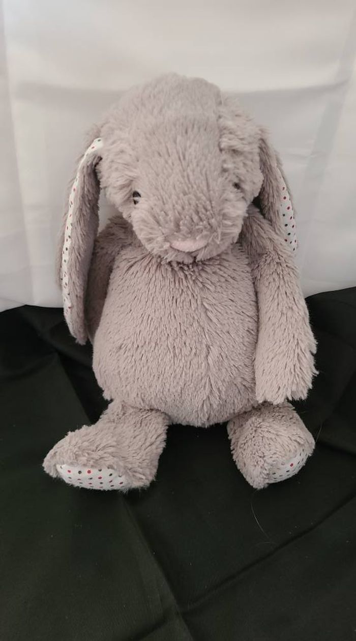 Doudou Peluche Damart Lapin Gris Pois Rouge Noir - photo numéro 3