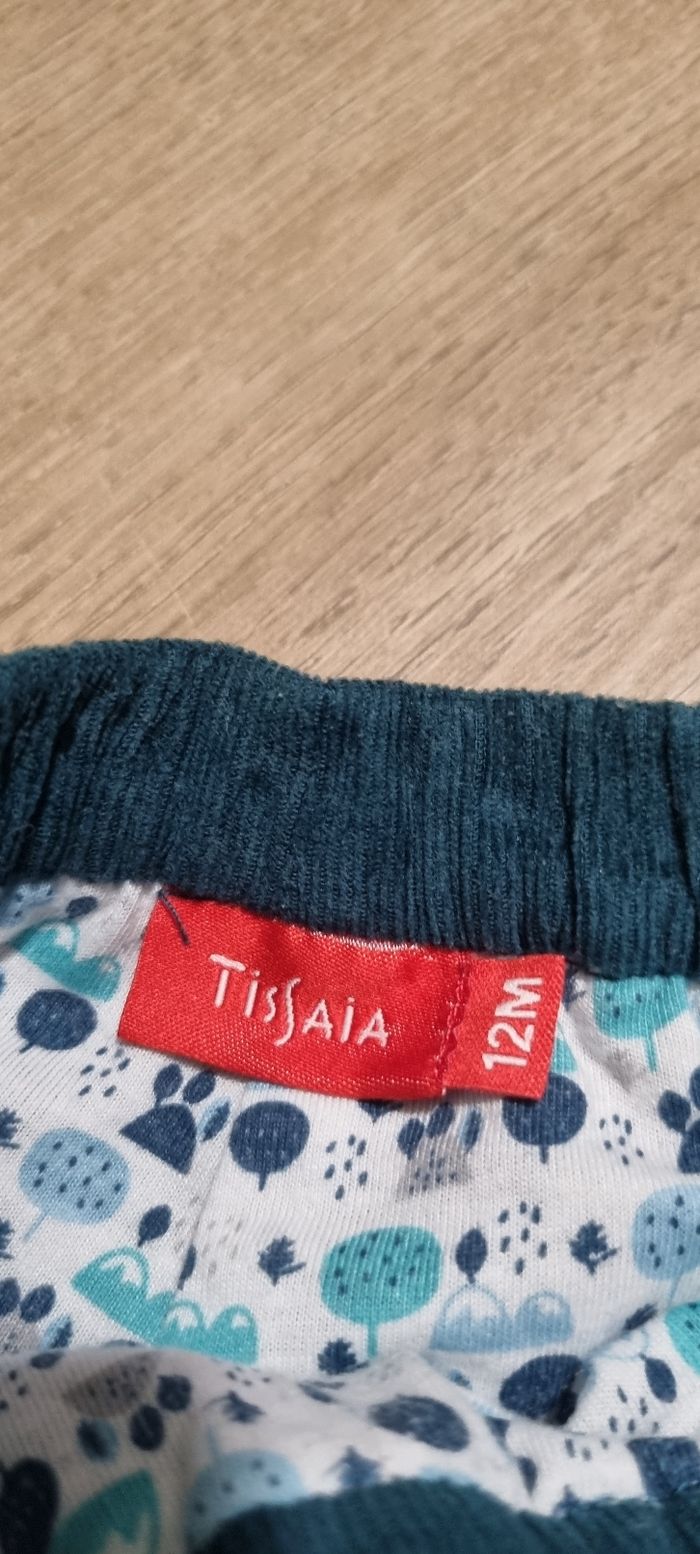 Pantalon en velours côtelé couleur vert canard Tissaia taille 12 mois Bon état