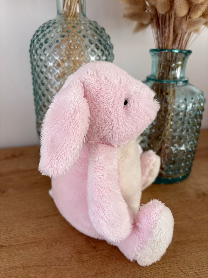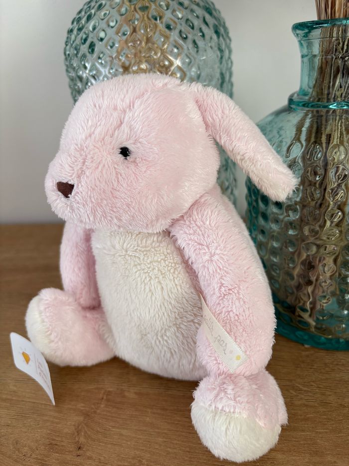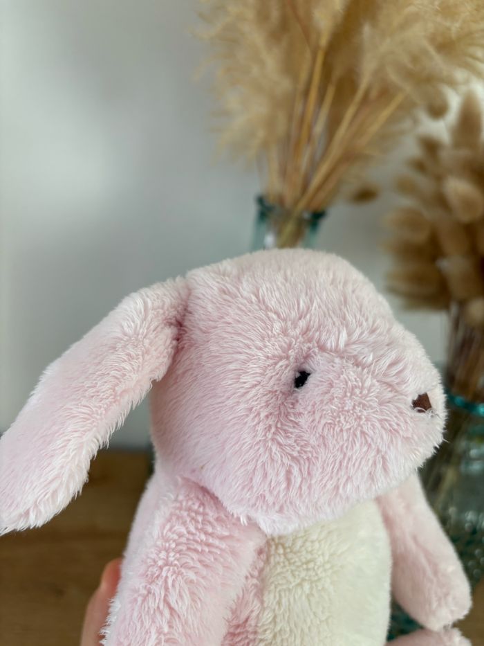 Peluche doudou lapin rose Ventre, intérieur des oreilles et des pattes blanc Moulin Roty Collection : à petits pas Hauteur : 20 cm Très bon état ! Réf : C14