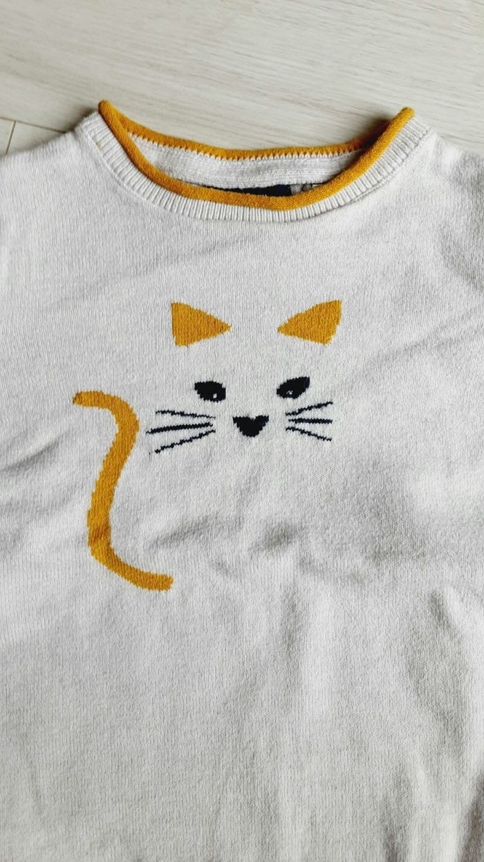 Vêtement fille pull crème motif chat Okaïdi 5 ans - photo numéro 1