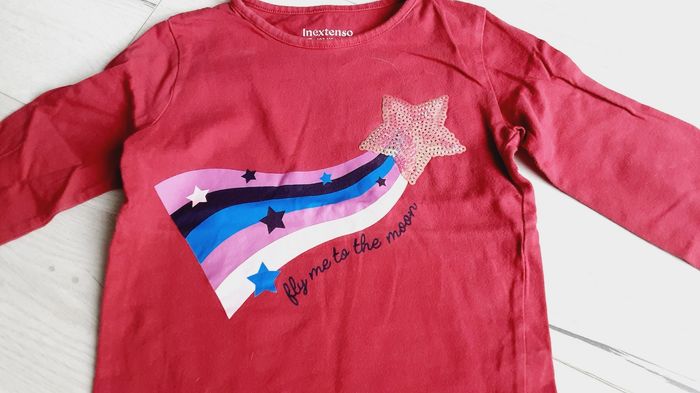 Vêtement fille tee-shirt manches longues fuschia motif arc en ciel étoiles In extenso 5 ans - photo numéro 3