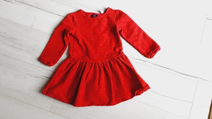 Vêtement fille robe manches longues rouge point étoiles brillantes Okaïdi 5 ans - photo numéro 1
