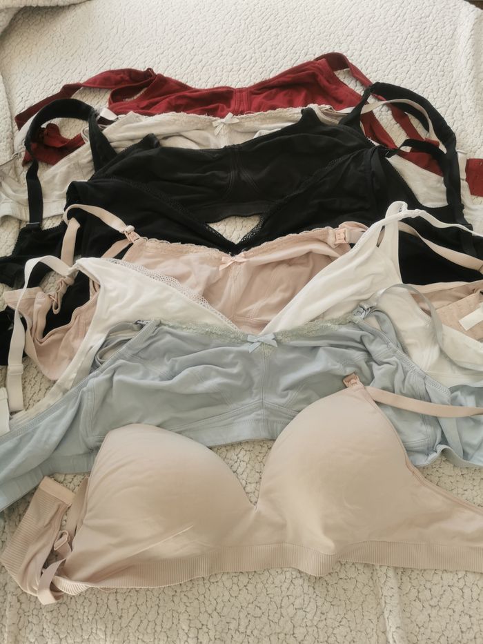 Gros lot de vetements grossesse et allatement tire lait avec : 10 pantalons marque ENVIE DE FRAISE CAMAIEU VERBAUDET taille 44-46 2 salopettes taille 44-46 MARQUE VERBAUDET 1 débardeur d'allaitement taille 42/44 10 soutiens gorges taille xxl pour tire lait et un de la marque nuk taille l 8 soutien gorges allaitement taille 105d un tire lait portable un recueil de lait marque lansinoh des coussinets d'allaitement marque lansinoh et autre 2 culottes de grossesse 3 voiles de tire lait allaitement une veste mere enfant marque c&a taille 48 un bandeau de grossesse CERTAINES AFFAIRES ONT DES TRACES D USURES PLUS DE PHOTOS SUR DEMANDE VENDU EN LOT OU AFFAIRES SEPARES