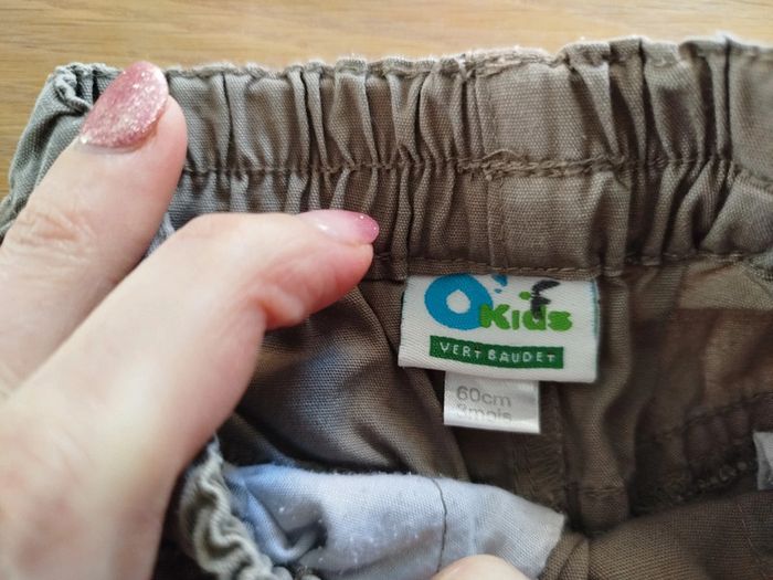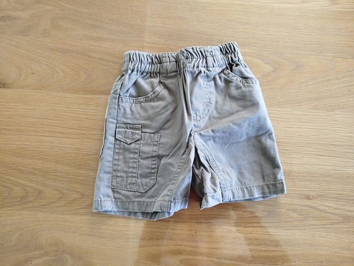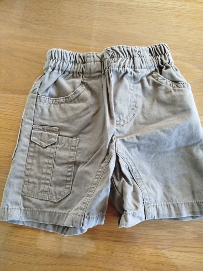 Short marron à taille élastique. Marque Vertbaudet, taille 6 mois, 67cm. Réduction activée sur les lots. #bébé #garçon #short #verrtbaudet #6mois