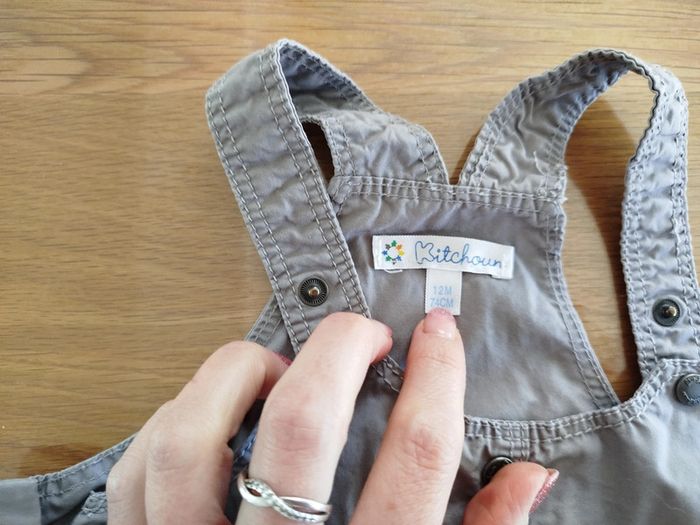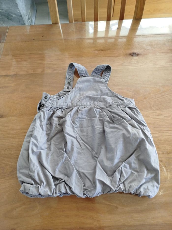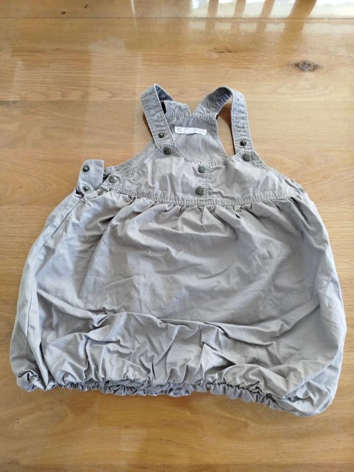 Robe grise, bretelles réglables avec les pressions. Marque Kitchoun, taille 12 mois, 74cm. Réduction activée sur les lots. #fille #bébé #robe #kitchoun #12mois #1an