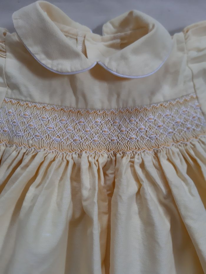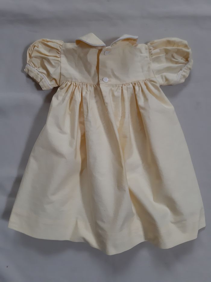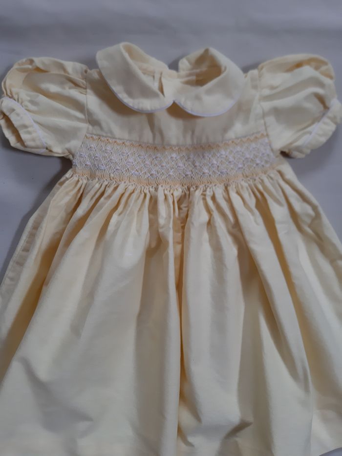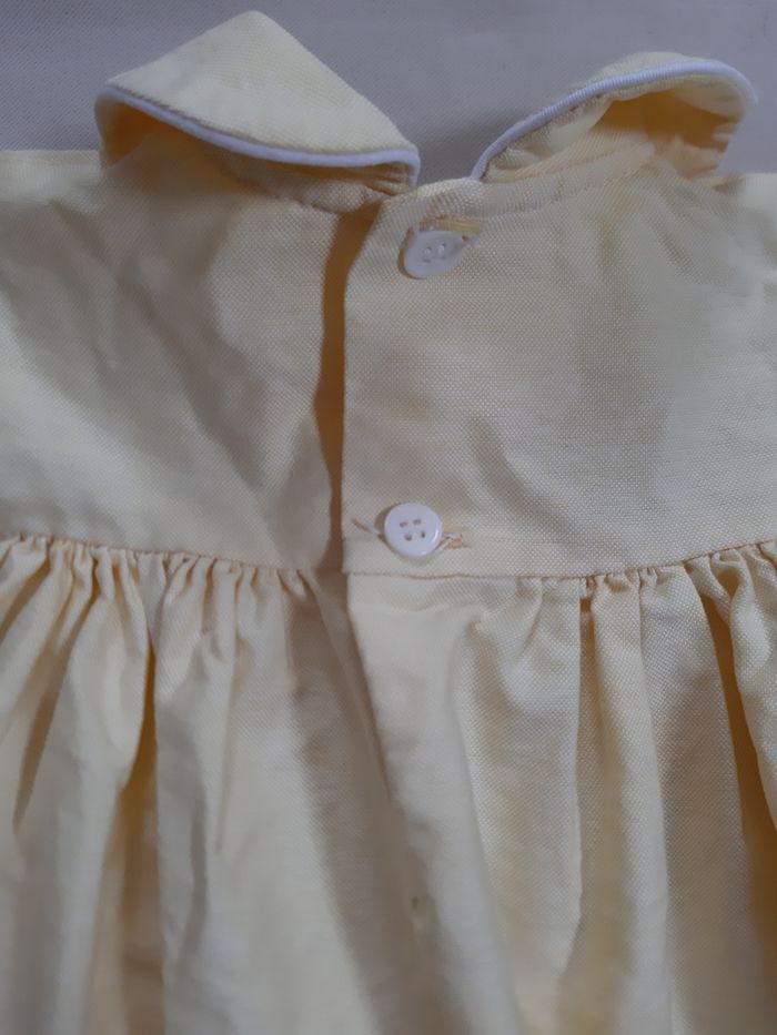 robe jaune à manches courtes, style rétro, en taille 18 mois 2 boutons dans le dos En très bon état, très peu portée.