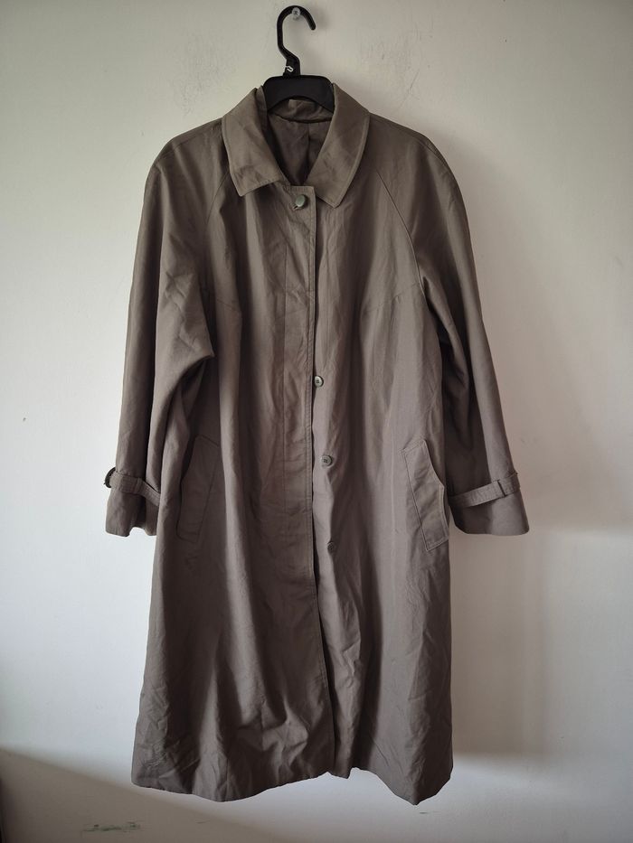 Trench sans marque en tres bon état . Boutons dissimulés et pas de ceinture. 65% polyester et 35% coton