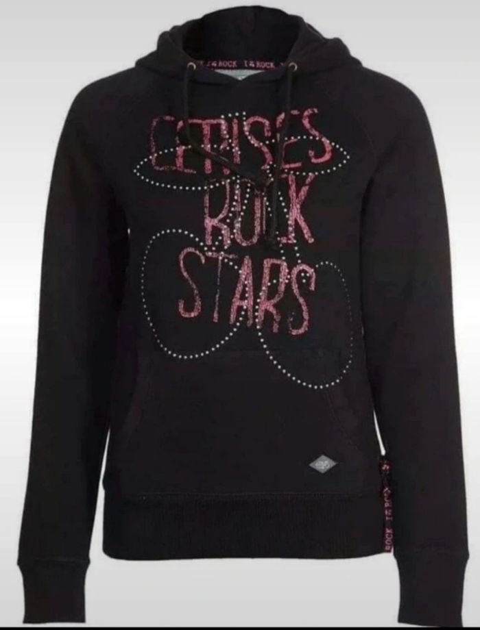 Sweat femme LE TEMPS DES CERISES Produit authentique etiqueté ! T.S devant : flocage de la marque plus silouhette des cerises en clout. Modele a capuche. Brodure au bas du sweat sur l elastique Notre prix 25€ Pour plus de renseignement me contacter