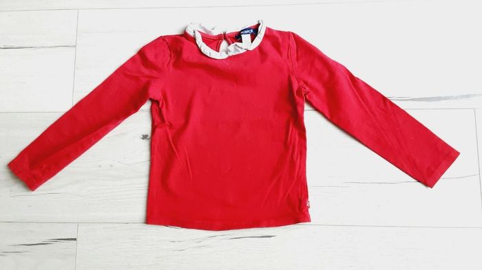 Vêtement fille tee-shirt manches longues fuschia col blanc Okaïdi 4 ans - photo numéro 1