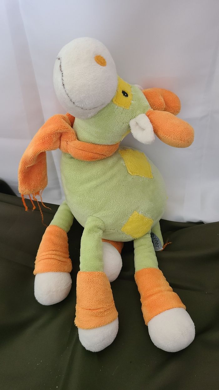 peluche elan cerf Vache vert orange echarpe patchwork toys'land lesté - photo numéro 1