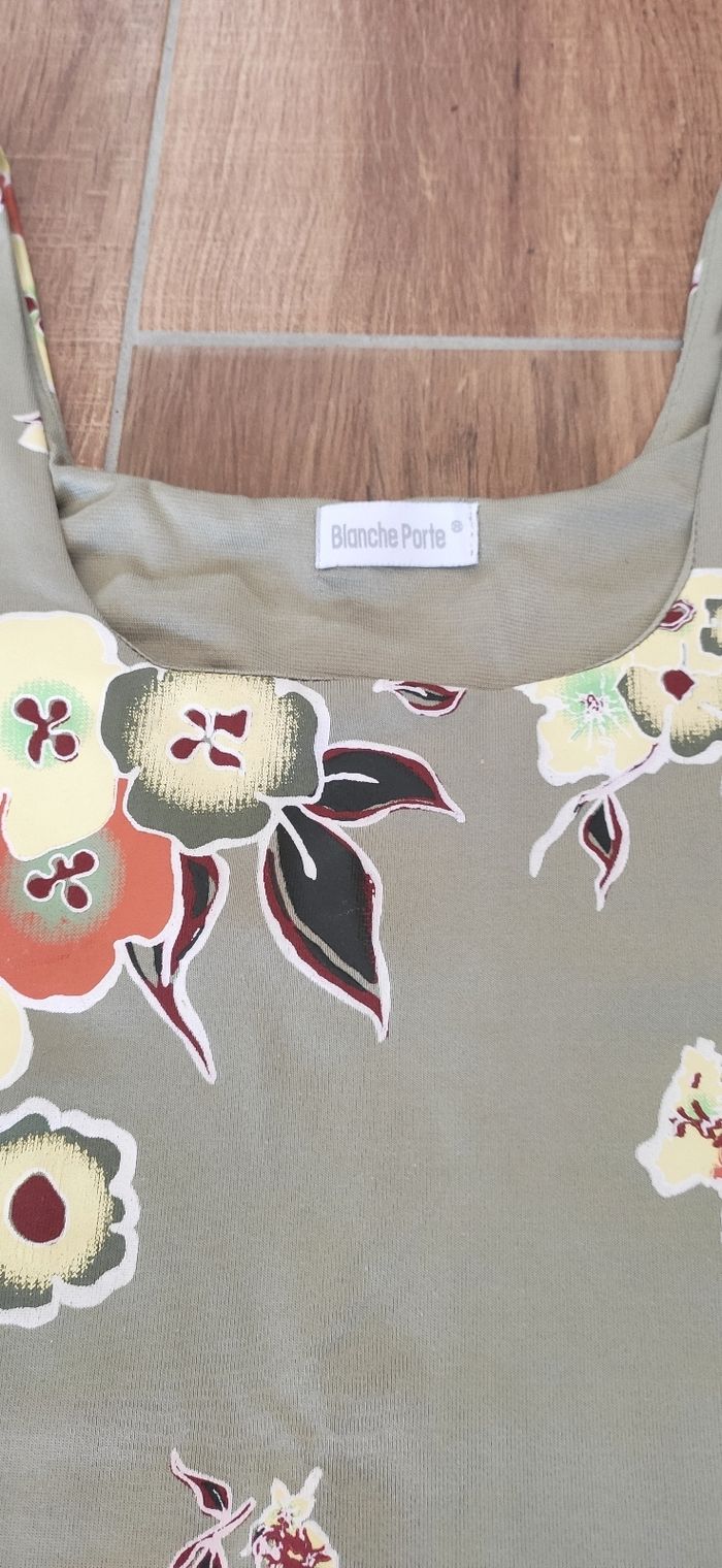 Très joli haut à fleurs Blancheporte En très bon état, matière agréable. Hauteur 61cm Aisselles à aisselles 55 cm.