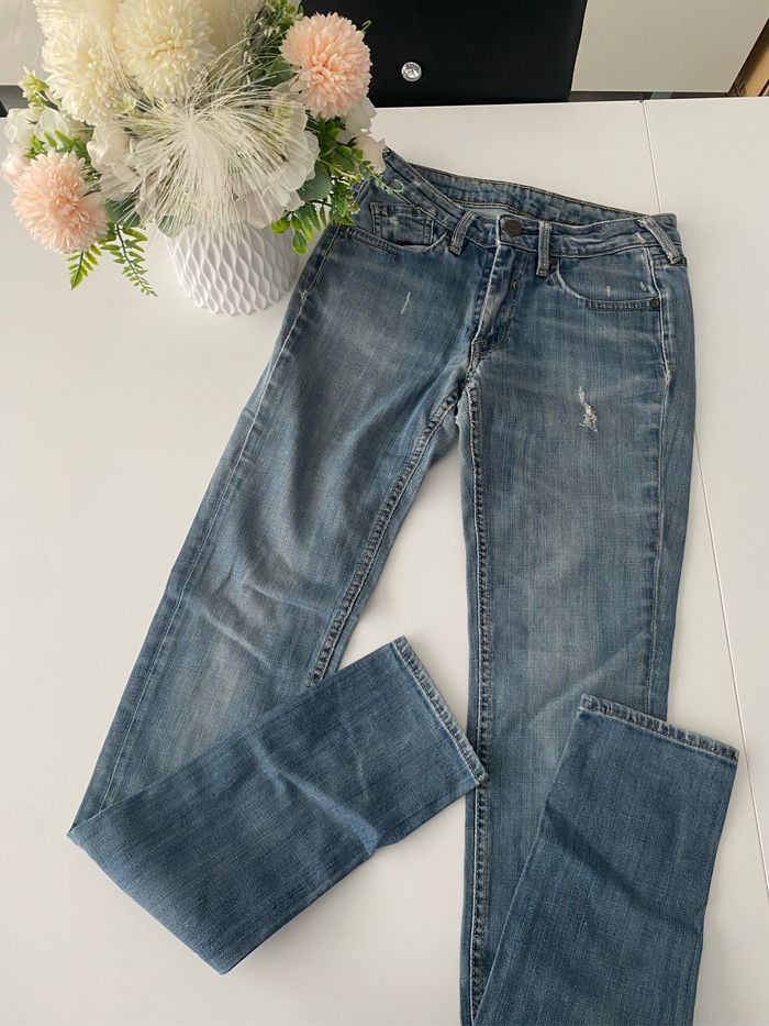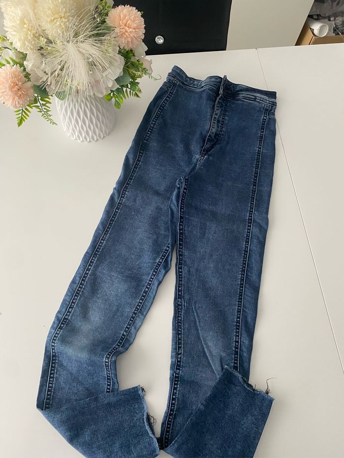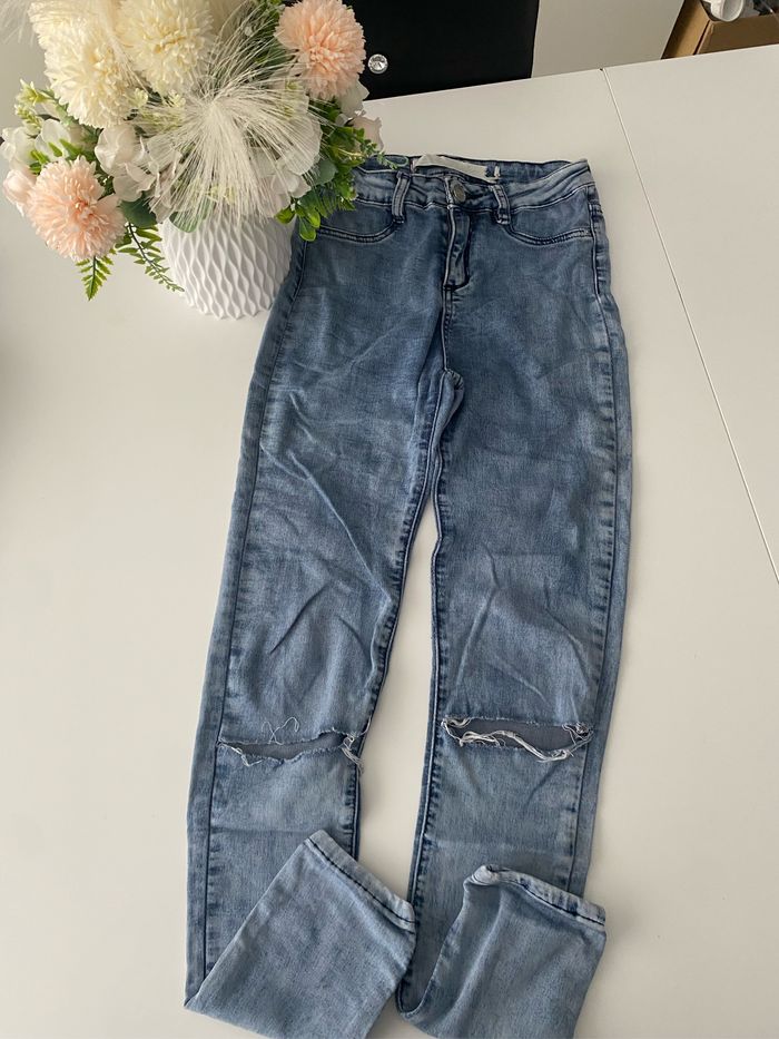 Lot de 4 jeans taille 34 . État satisfaisant ( voir défauts sur les photos ) . Marques : Jennyfer, H&M, et 2 jeans le temps des cerises . 10€
