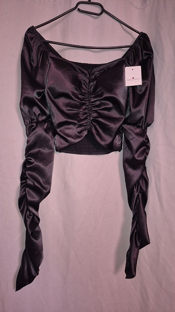 Top Noir Satin Neuf avec étiquette Coque au niveau de la poitrine