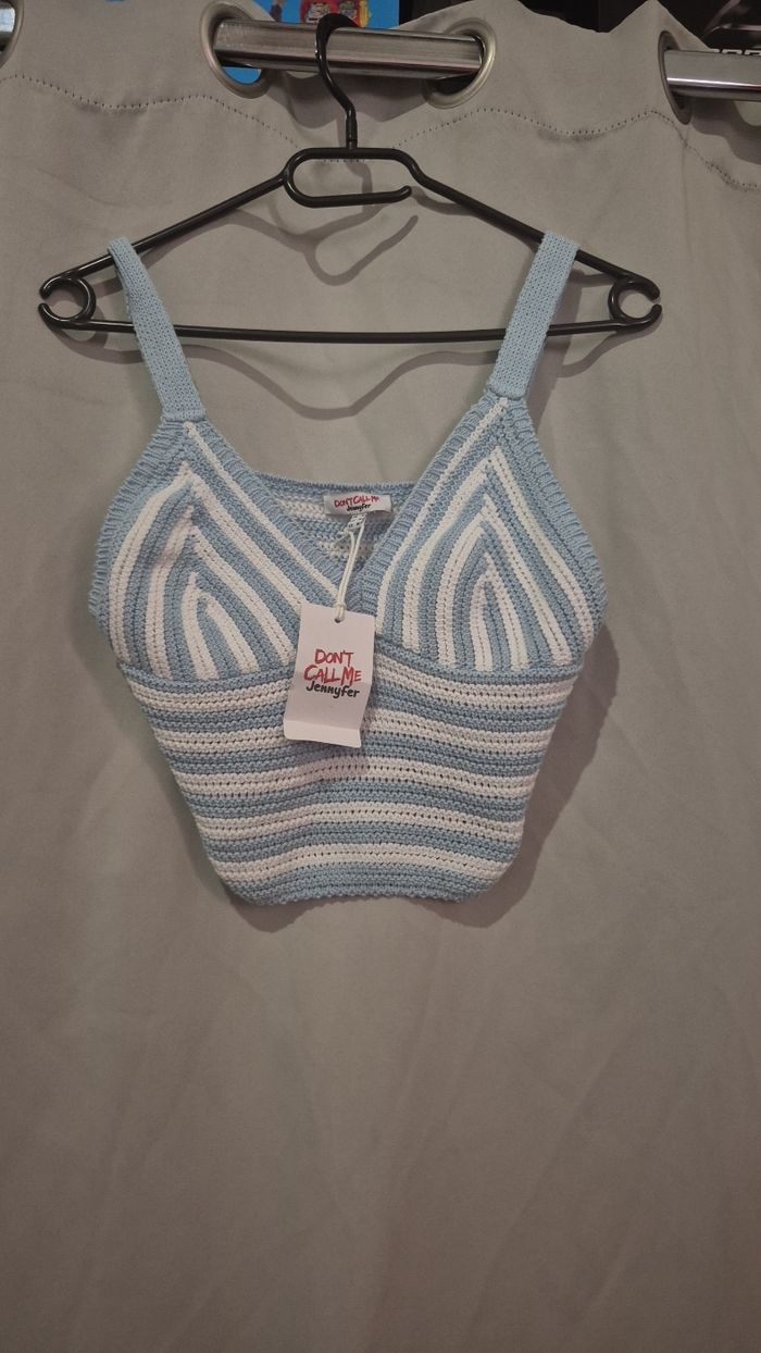 Top court Neuf avec étiquette Bleu / blanc Jennyfer