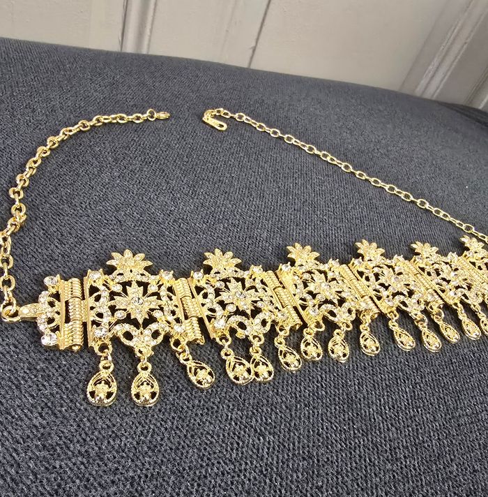 Bijou de tête traditionnelle algérien A porter avec une tenue chaoui En métal doré et pierre blanche Réglable avec une chaîne Jamais porté #bijoudetete #diademefrontal #bijoudetetechaoui #melhfa #mariagealgerien #chaoui