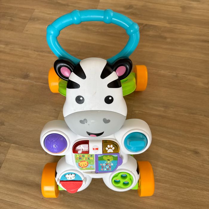 Voici mon trotteur bébé zèbre, un jouet amusant et éducatif pour les tout-petits ! Cet adorable trotteur a une forme de zèbre avec de grandes oreilles noires et blanches ainsi que des roues colorées qui permettent à bébé de se déplacer facilement. Le trotteur est équipé de plusieurs boutons et formes à presser qui produisent des sons et des lumières pour stimuler les sens de votre enfant. Il est parfait pour l'aider à développer sa motricité et sa coordination tout en s'amusant. Idéal pour les enfants de 12 mois et plus, ce trotteur zèbre est en excellent état et prêt à apporter des heures de jeu et d'apprentissage à votre bambin. - Trotteur bébé en forme de zèbre - Boutons et formes pour sons et lumières - Roues colorées pour une mobilité facile - Recommandé à partir de 12 mois - Excellent état, très peu utilisé