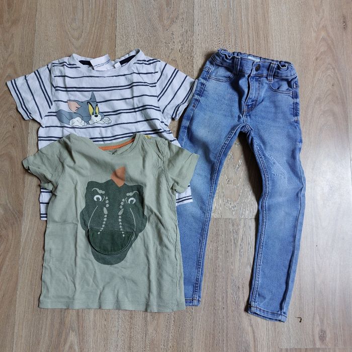Comprend 1 jean skinny Kiabi taille ajustable, 1 t-shirt tom et Jerry et un t-shirt Npo kid Aussi en vente à l'unité