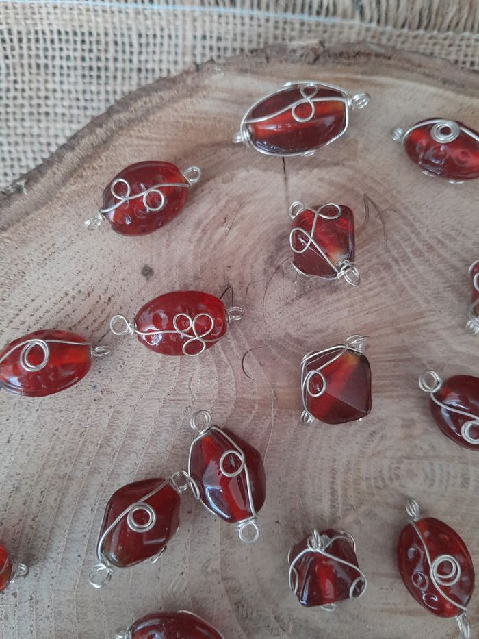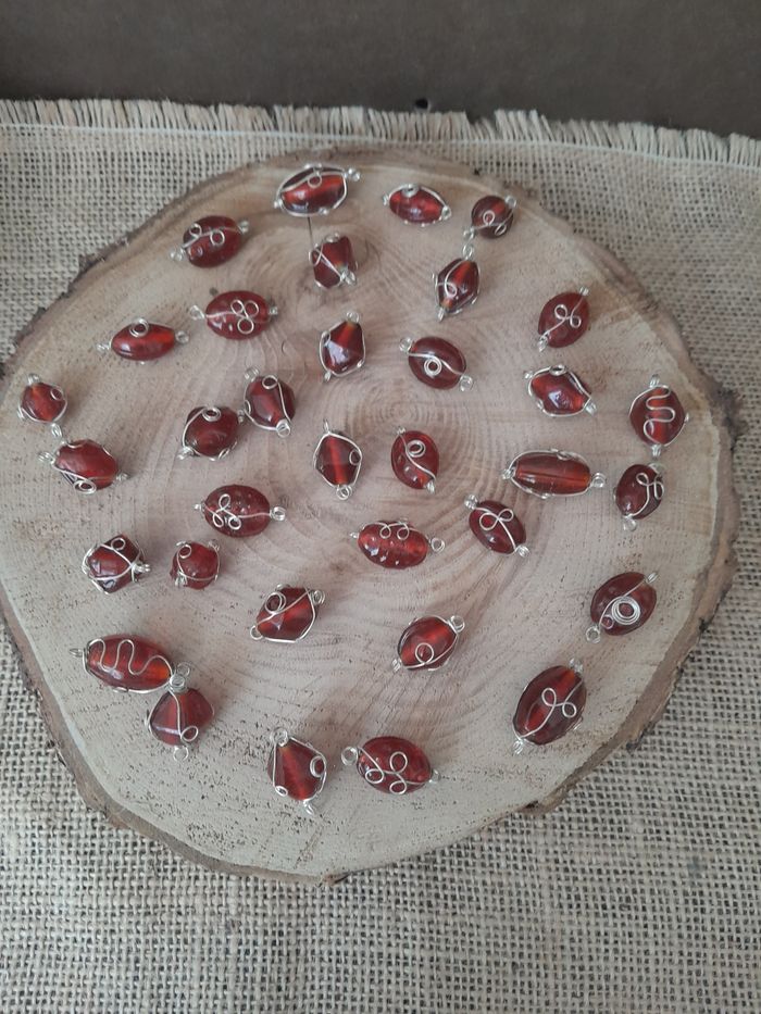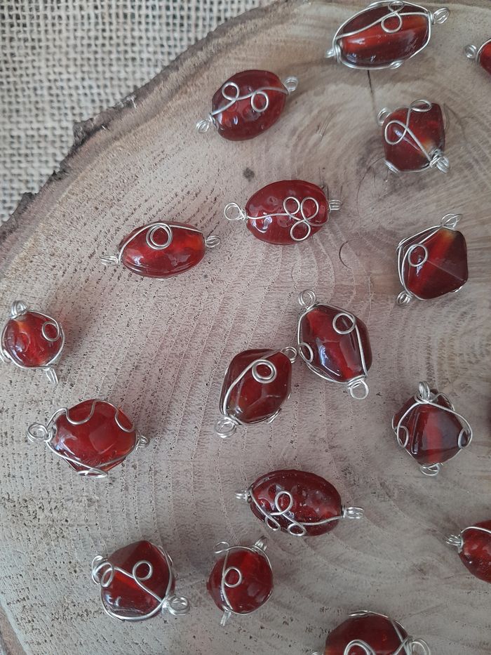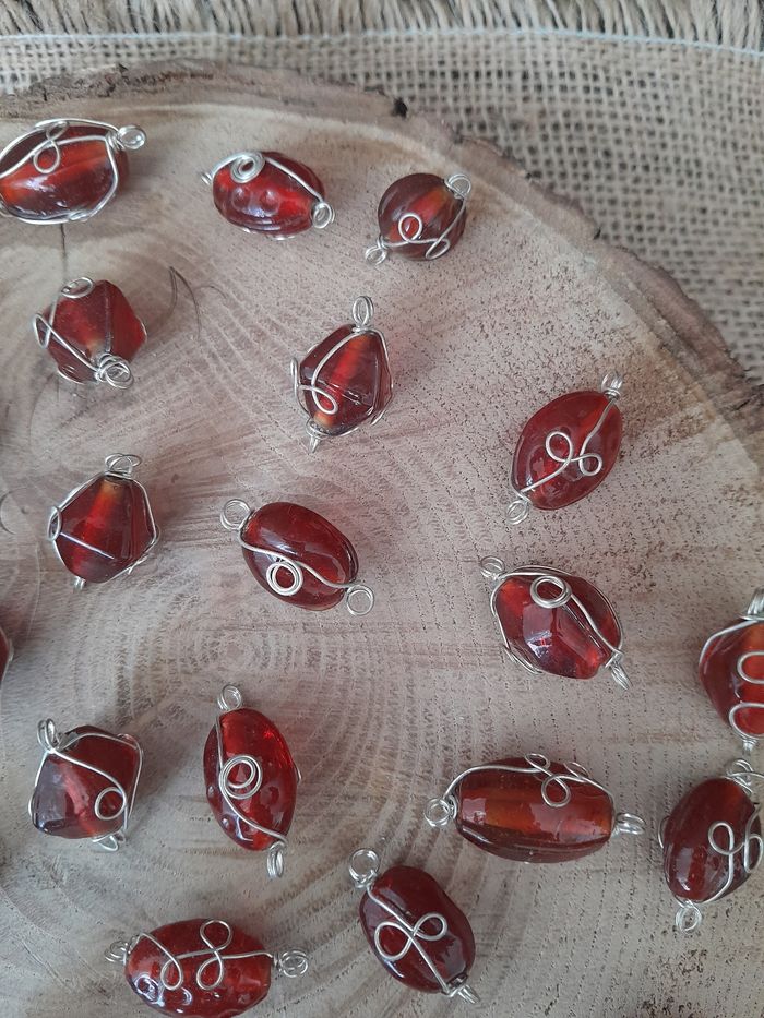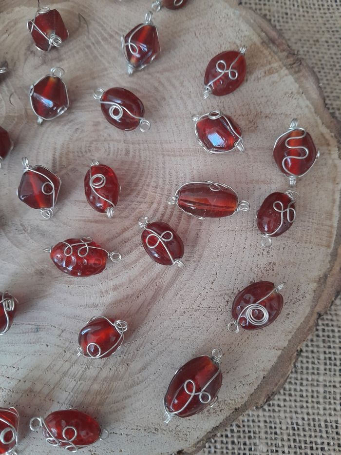 Lot de 34 perles rouges en verre et fils de fer. D'autres perles et accessoires de dispo dans mon dressing n'hésitez pas à jeter un coup d'œil ou à me demander