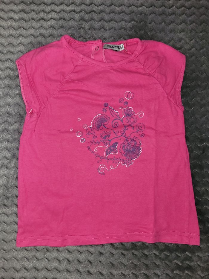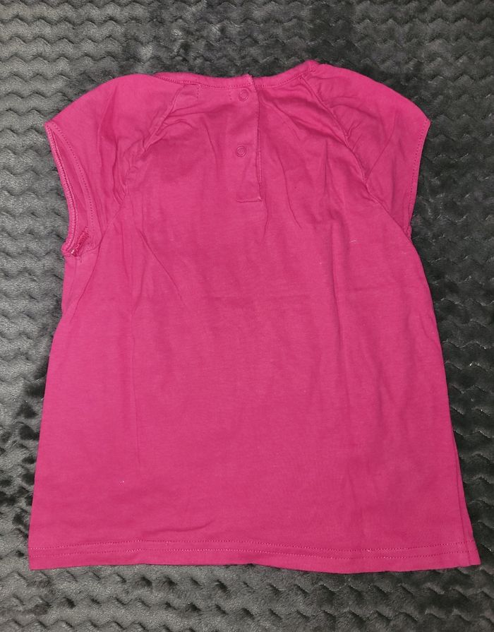 T-shirt à manches courtes. Boutons pression au dos. Couleur fuchsia. Taille 18 mois. Très bon état.