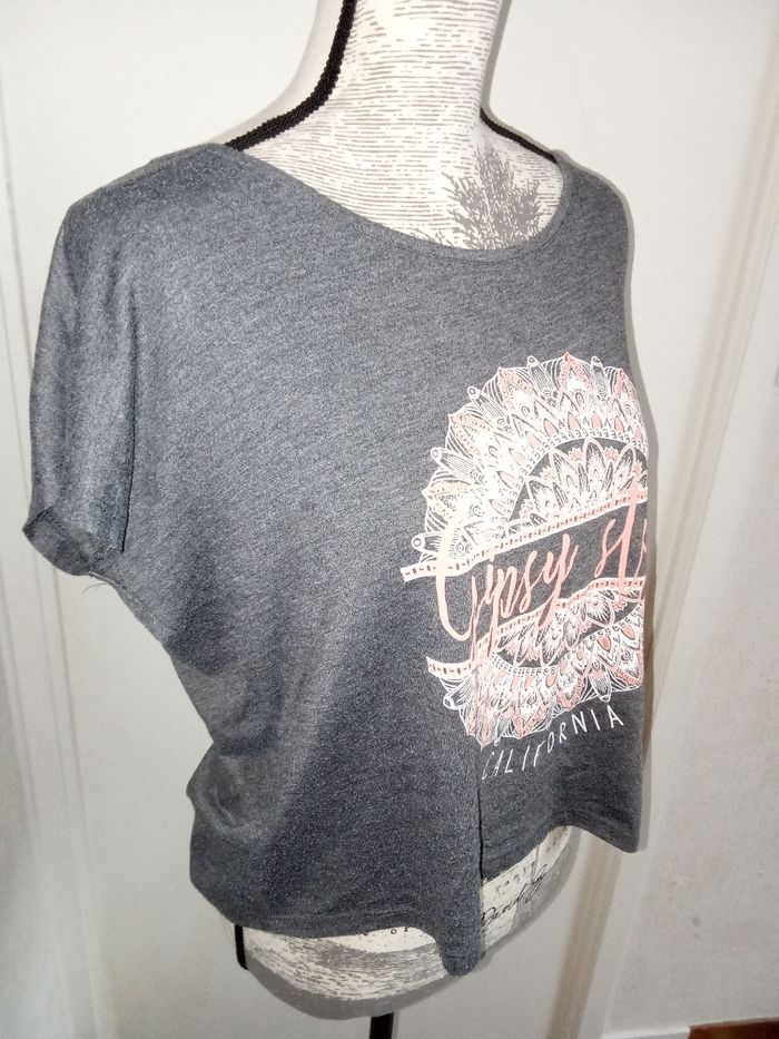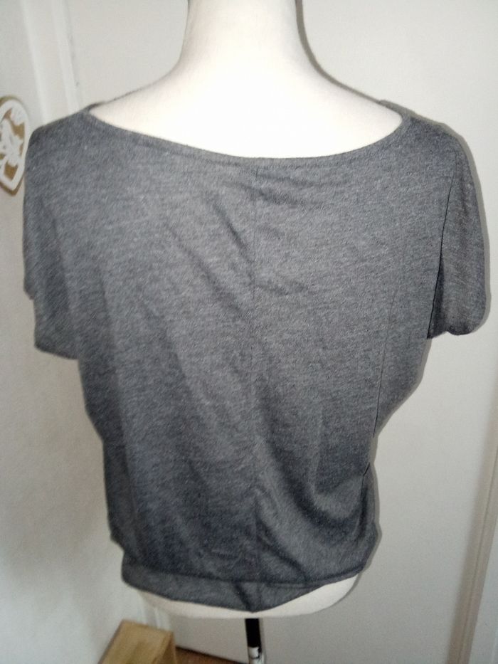 Tee shirt manche courte gris motif , bon état général Beaucoup d'autres tuniques femmes mm taille également à vendre ds mon dressing et réduction activée