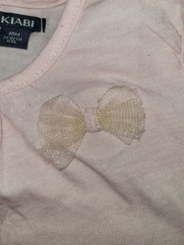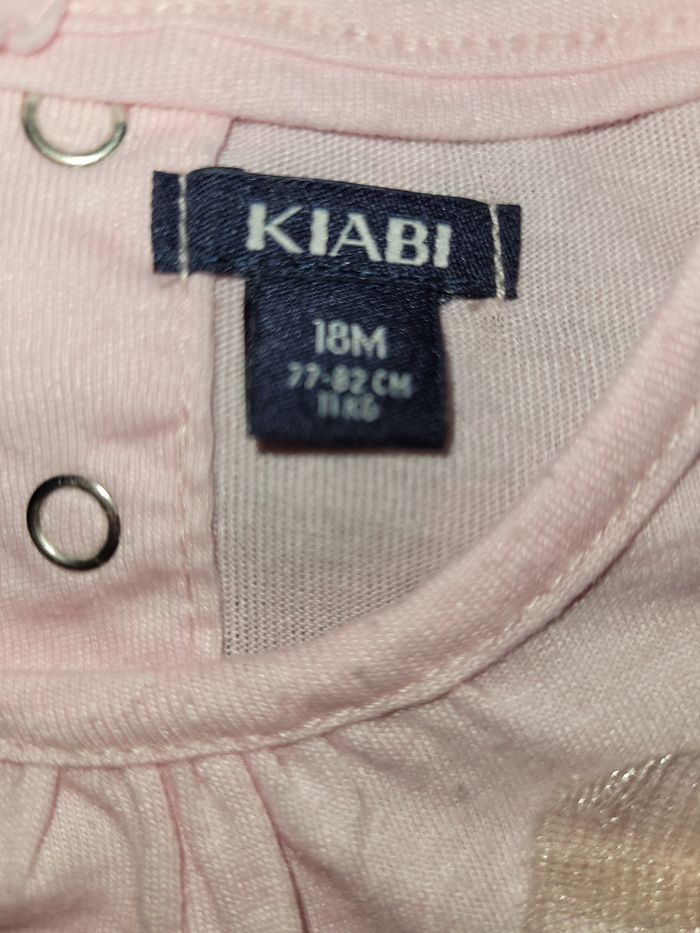T-shirt à manches courtes. Couleur rose pâle. Attache par boutons pression au dos. Taille 18 mois. Très bon état.