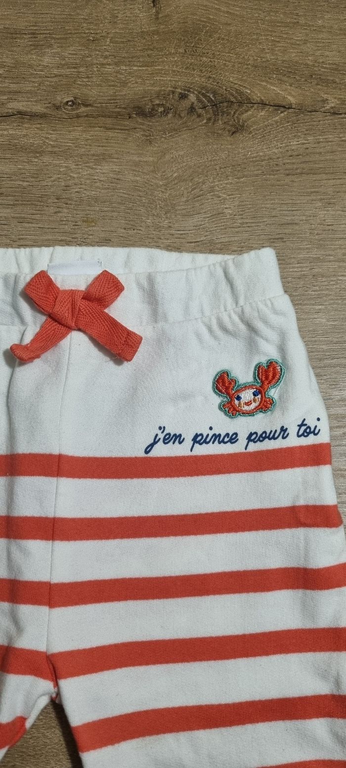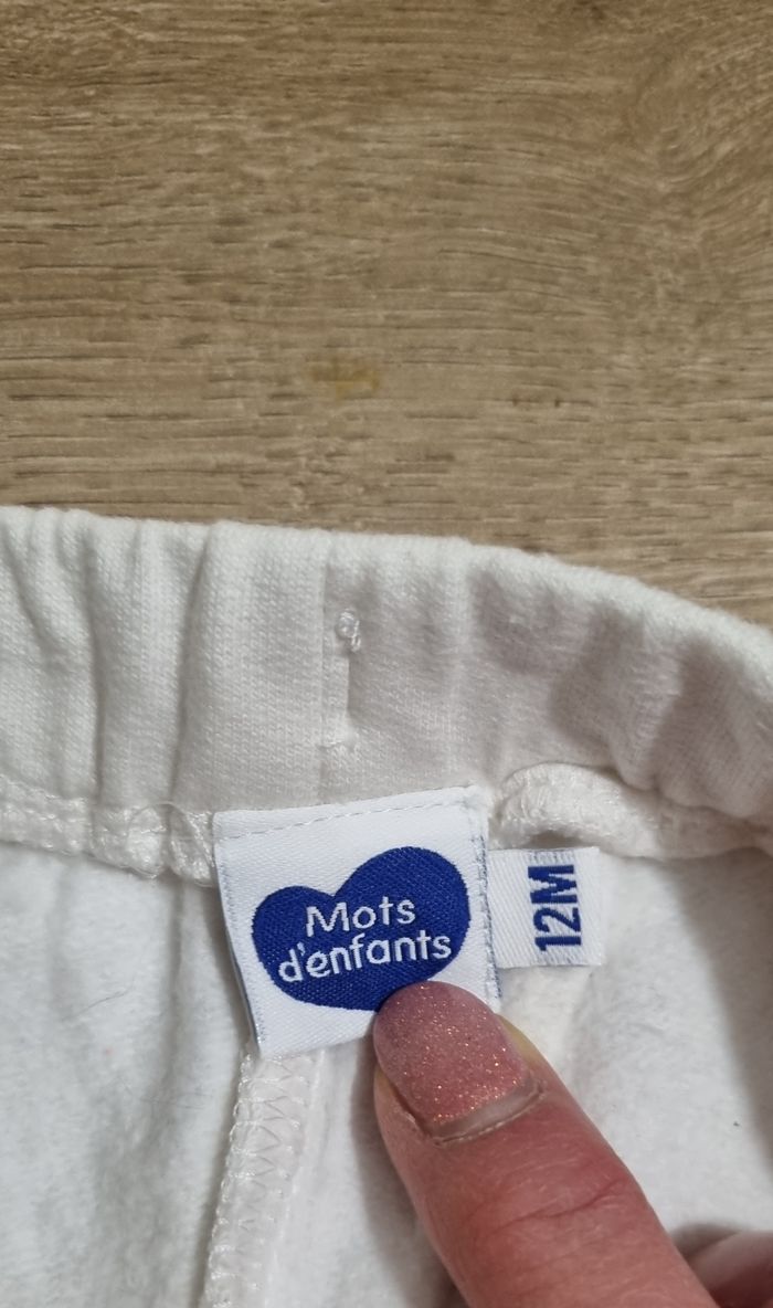 Pantalon type jogging blanc à rayures corail Mots d'enfants taille 12 mois Très bon état