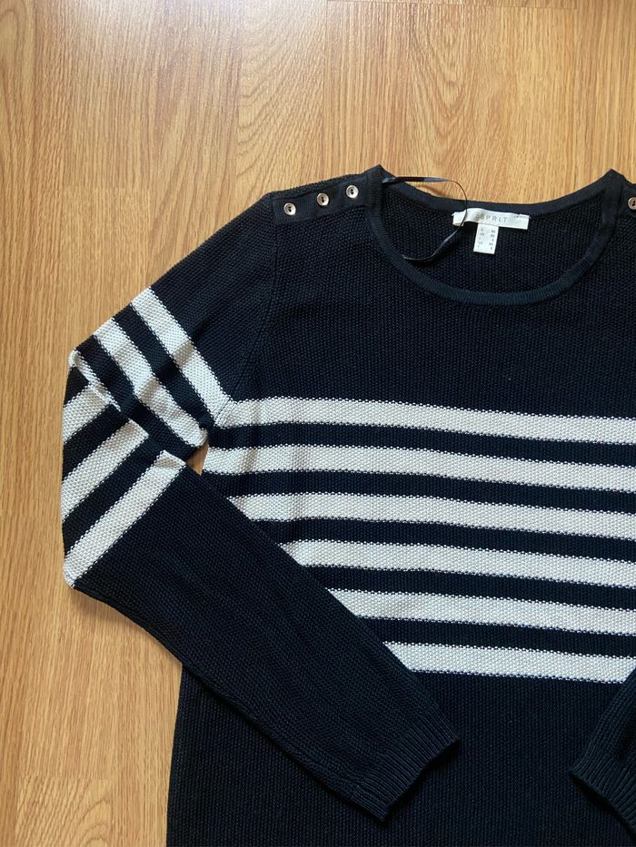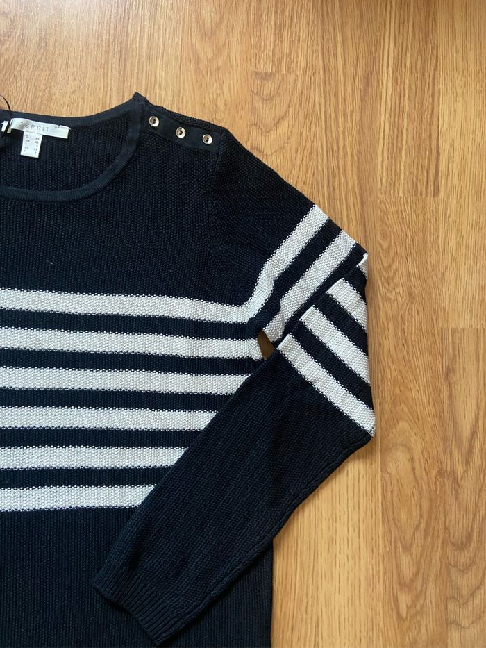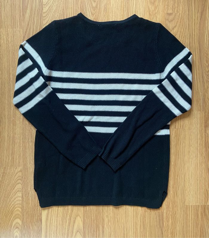 Pull marinière noir et blanc Maille fine et agréable Fantaisie boutons sur les épaules Matière polyester viscose