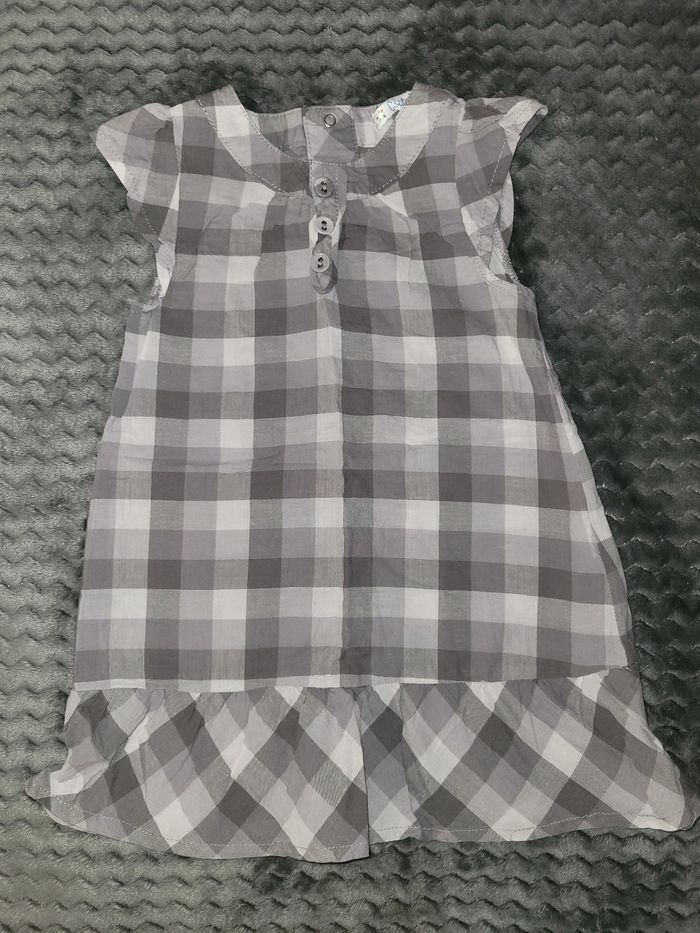 Robe à carreaux. Couleur gris. Attache par boutons pression au dos. Peu portée. Très bon état.