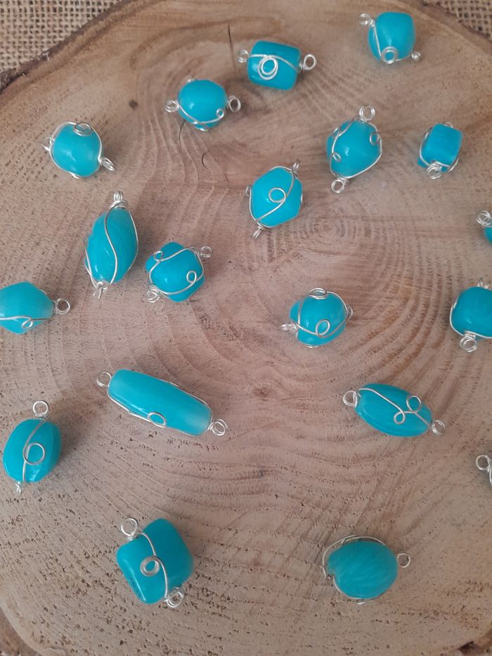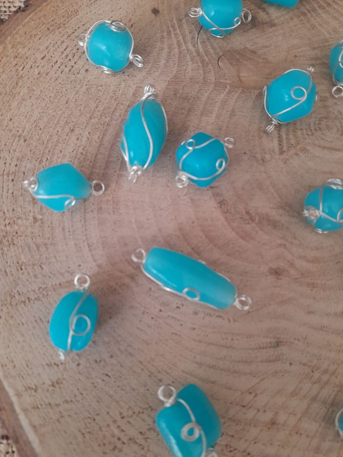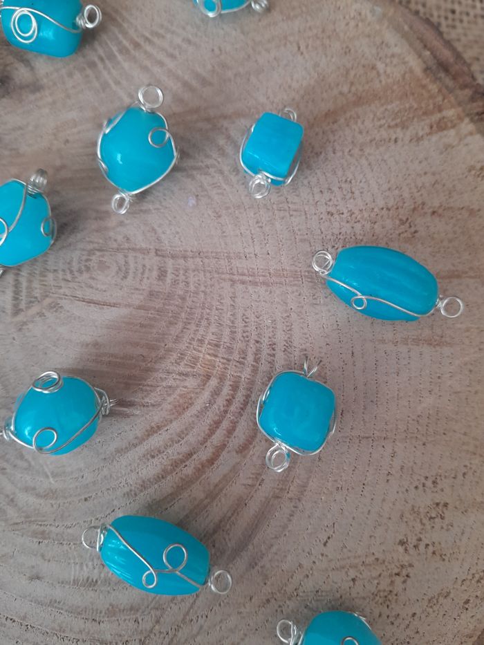Lot de 20 perles bleu en verre et fils de fer. D'autres perles et accessoires de dispo dans mon dressing n'hésitez pas à jeter un coup d'œil ou à me demander