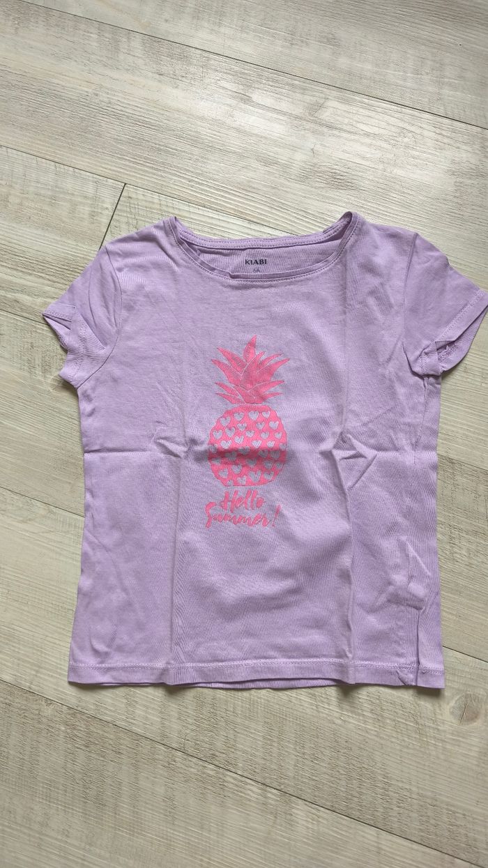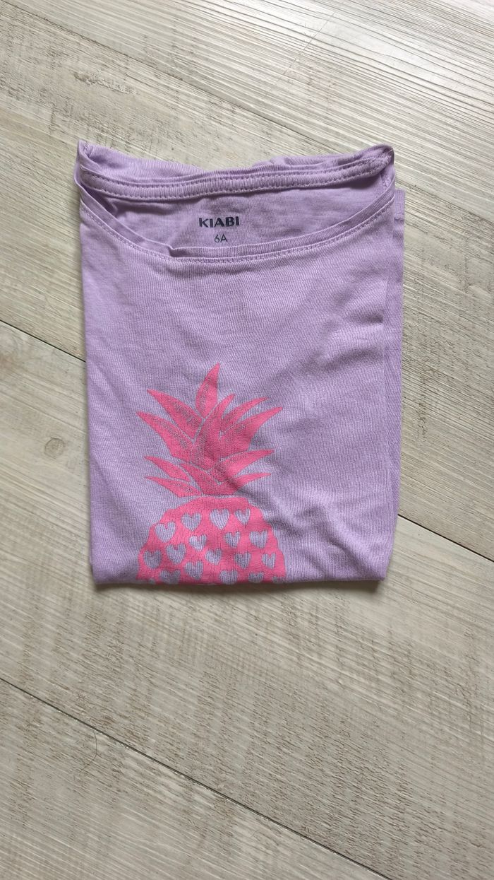 Jolie t-shirt manche courte fille, très bon état, motif ananas violet claire. Marque Kiabi Taille 6 ans #reductionsurleslotsactivees #envoirapide #envoiesoigné