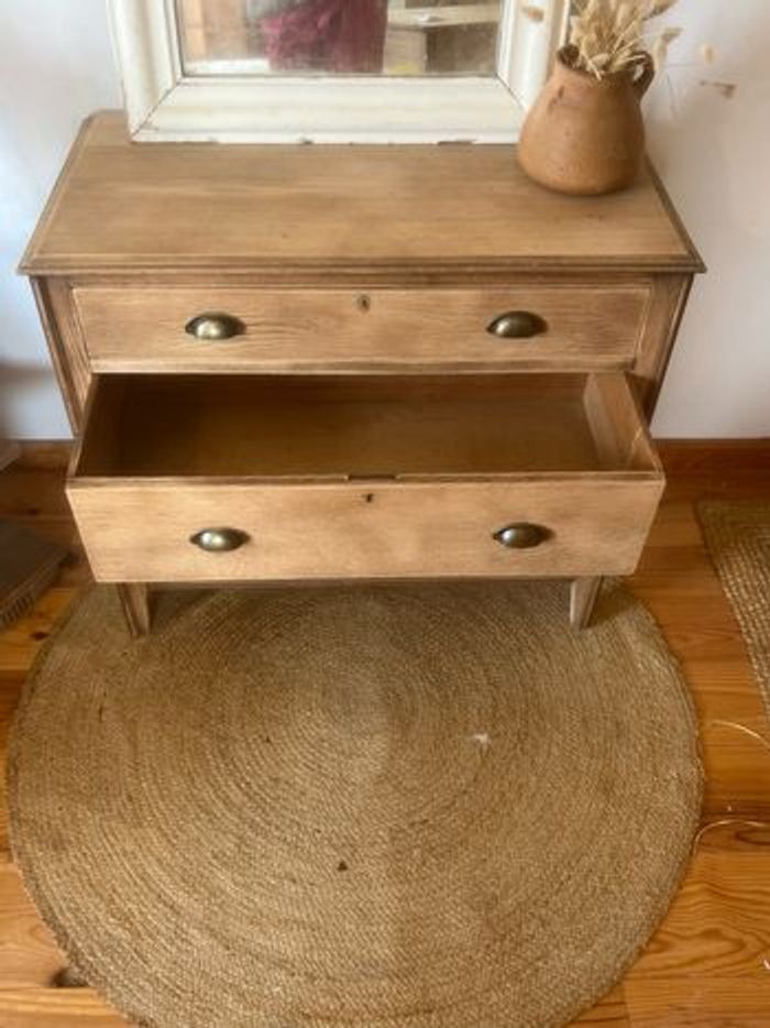 Commode ancienne en chêne massif brut 3 tiroirs Pieds compas Hauteur 78cm Longueur 89cm Profondeur 45cm Le prix comprend la livraison en France votre domicile par transporteur Nordic - home.fr