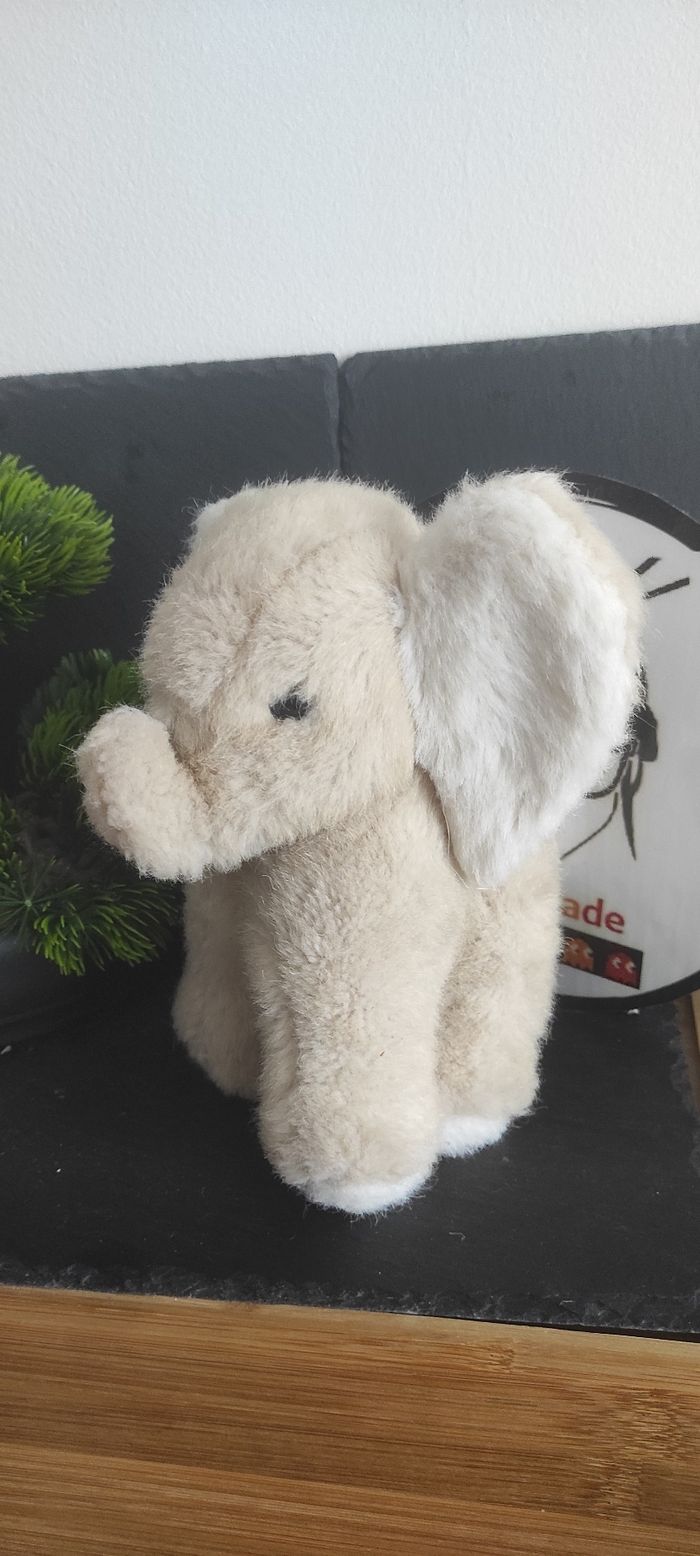 peluche ancienne éléphant gris blanc standing aux nations beige marron rond