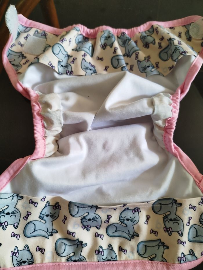 État impeccable, utilisée avec un grand roulement et toujours lavée en deux cycles avec lessive poudre adaptée. Super marque de Fabrication française, malheureusement disparue. Double gousset très pratique Regardez mes autres CL
