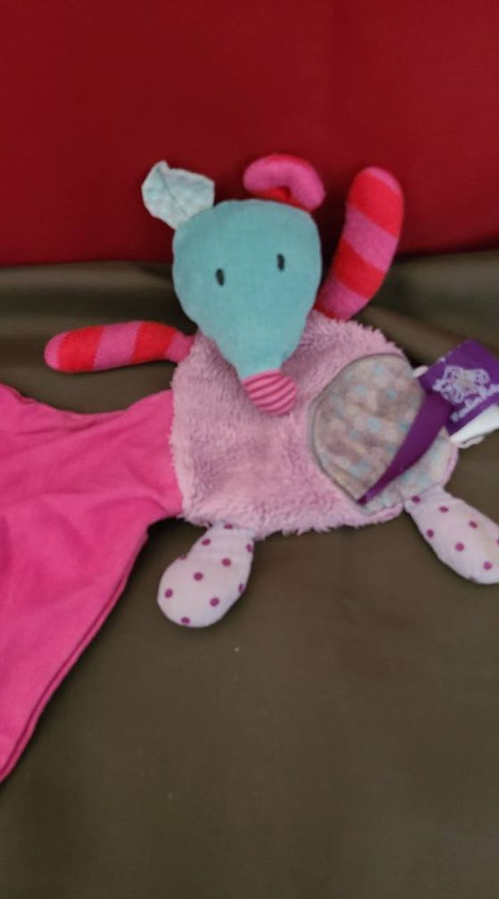 Moulin Roty Les jolis pas beaux Doudou mouchoir souris rose - photo numéro 1