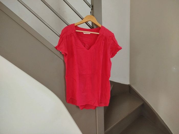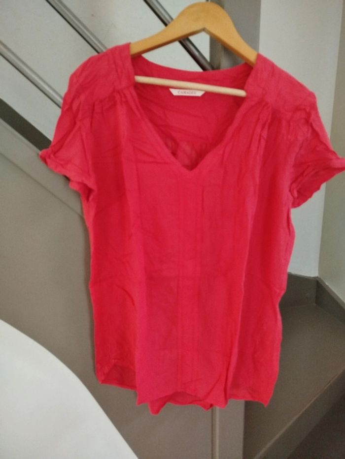 Blouse fluide à manches courtes rose fuschia. Mauvais rendu de la couleur en photo. Marque Camaïeu, taille 36. Réduction activée sur les lots. #femme #blouse #camaieu #taille36 #tailles