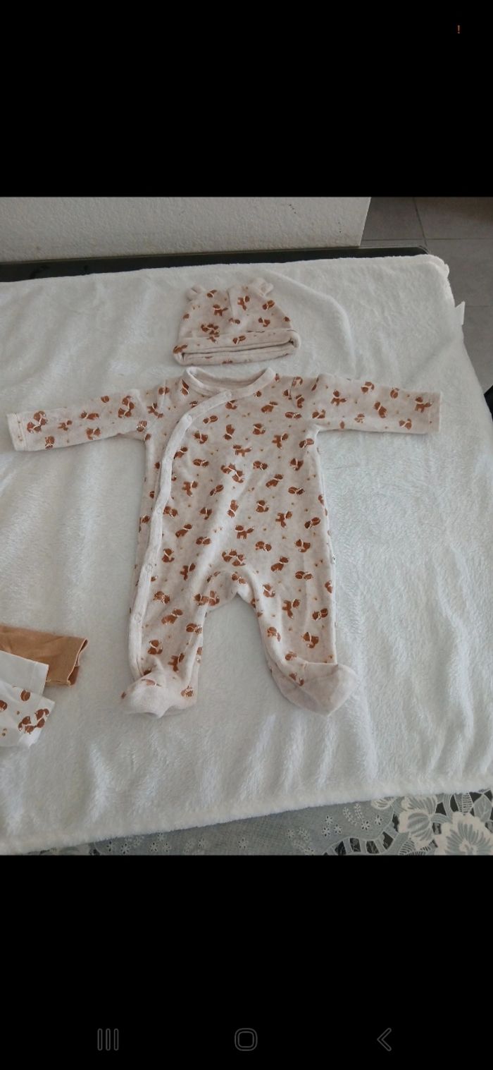 Ensemble assortie 1 pyjama 3 bodies 1 bonnet Le pyjama a étais mis que 2 fois