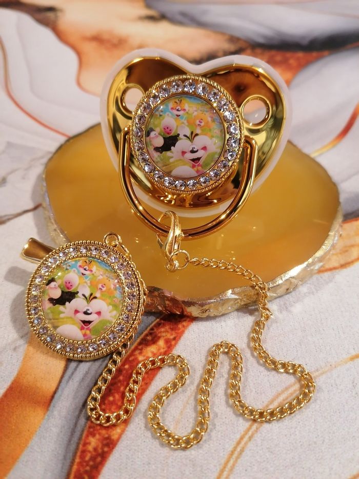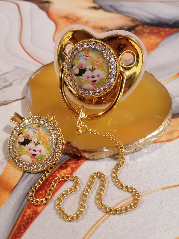 Sucette strass avec attache Couleur OR Protection inclus Sucette 100% Silicone, Sans BPA. Sucette orthodontique, taille unique. Neuf emballé