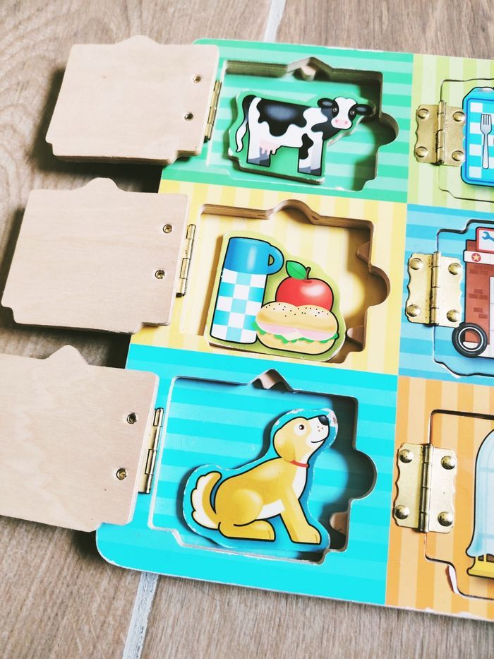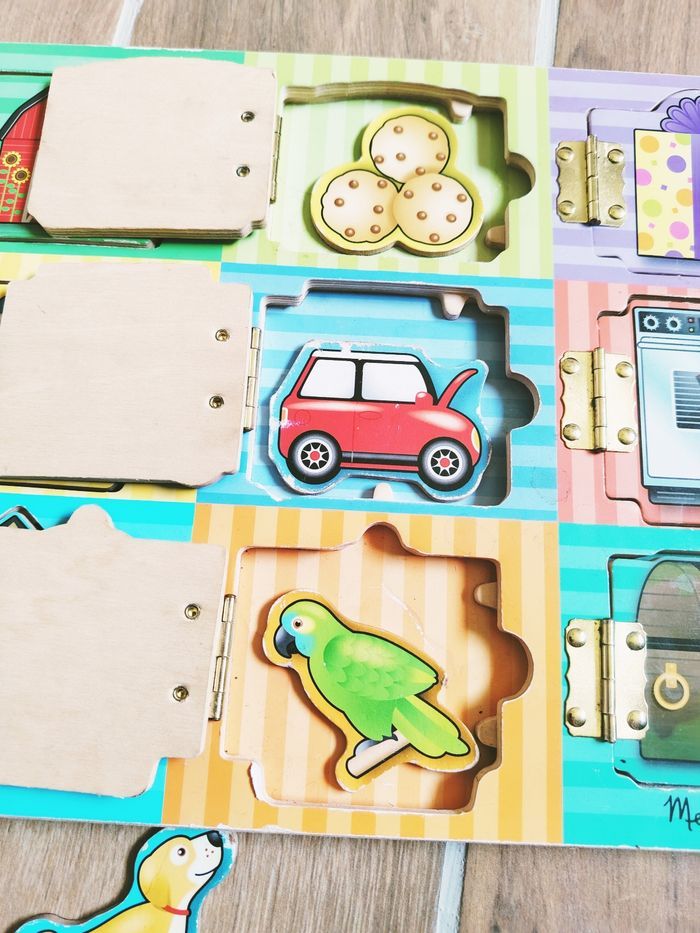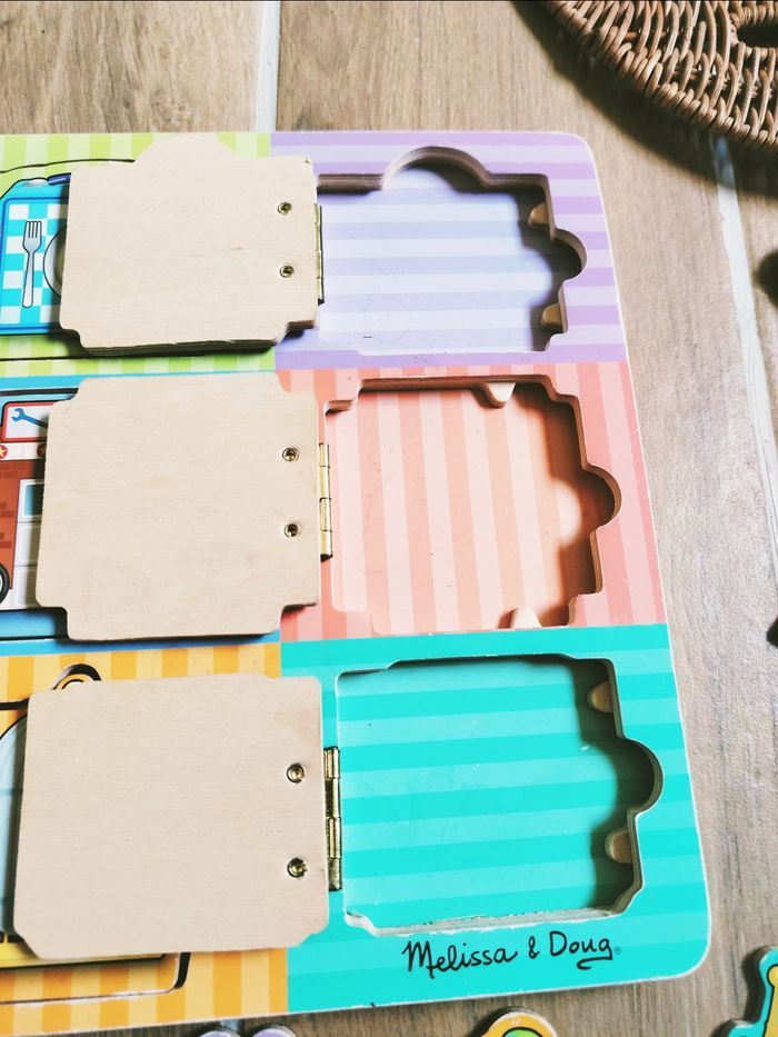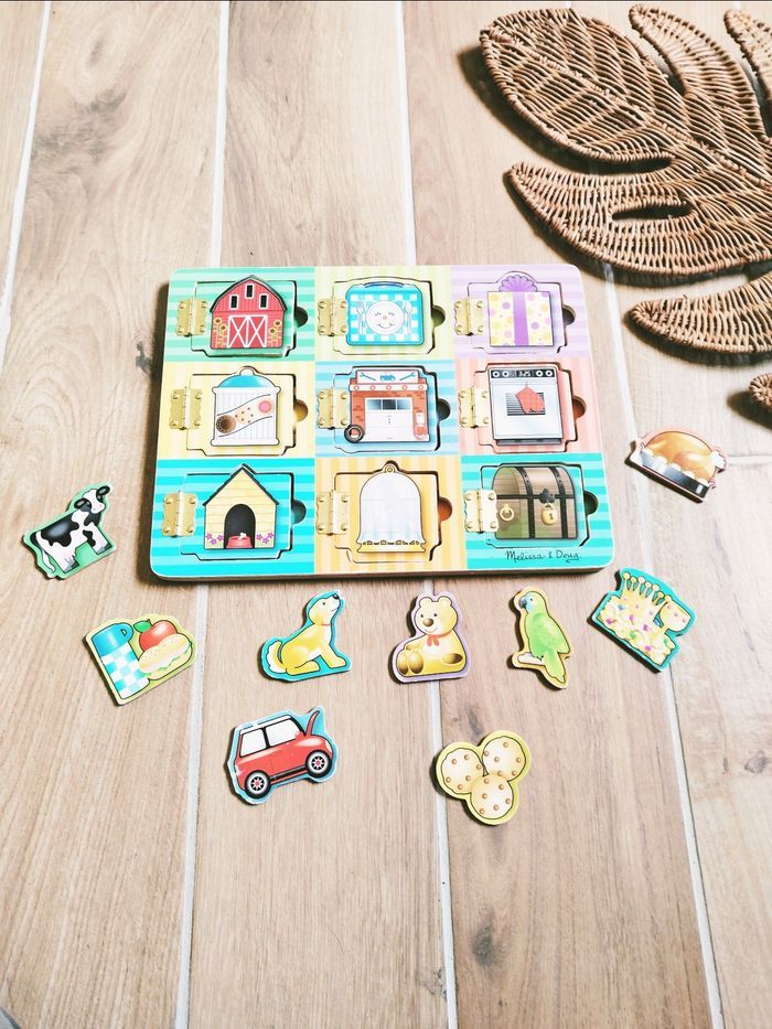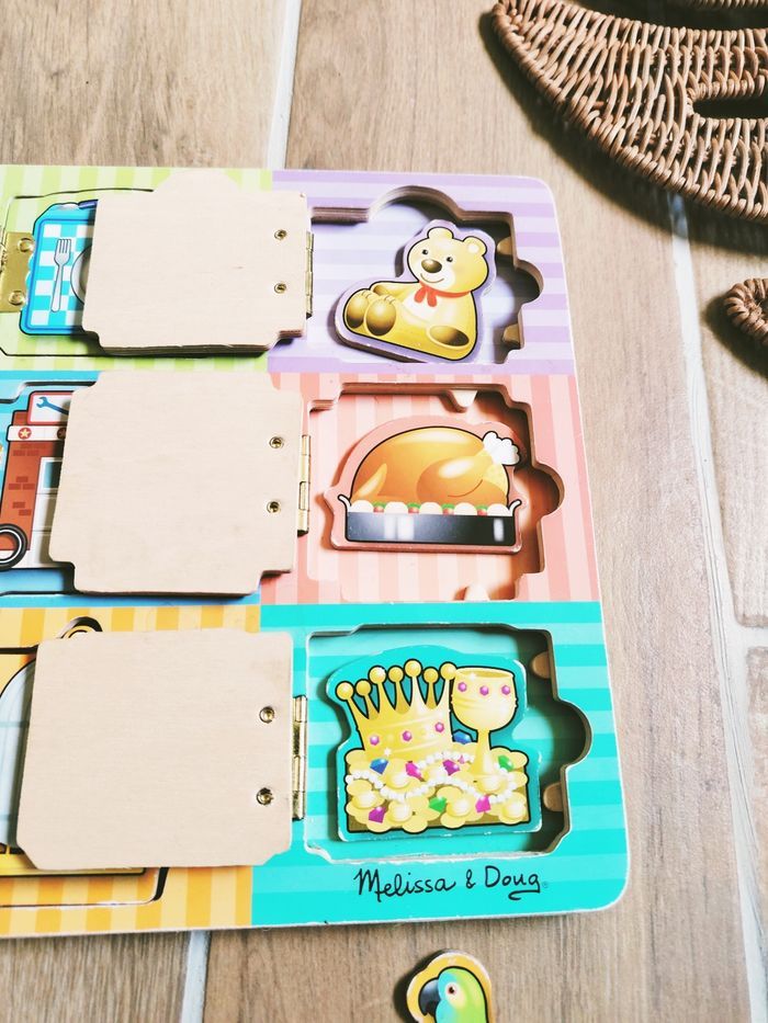 🫣 Jeu d'éveil - Planche/panneau en bois fenêtres cache cache magnétique - marque Melissa et Doug - JB757