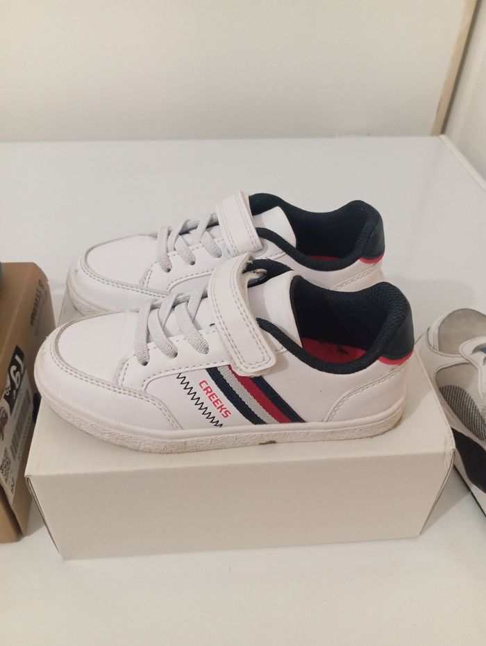 Bonjour, je vends des baskets de mon fils car il le porte plus en bonne eta , puma taille 28 a 15€, baskets crackers a 10€ porte tre peu, charlie frends 10€, geox 15€