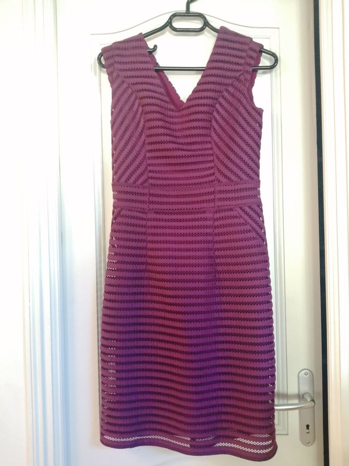 Robe très bon état portée 1 ou 2 fois Tissu original Entièrement doublée Fermeture éclair arrière 38 cm permettant un enfilage facile Reduction lot activée