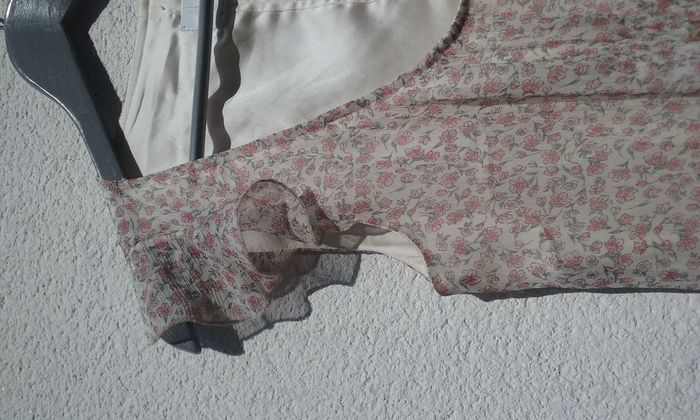 Petite robe d'été à petites fleurs, toute légère en voile et sa doublure, agréable à porter, légèrement transparente, coloris rose et crème.