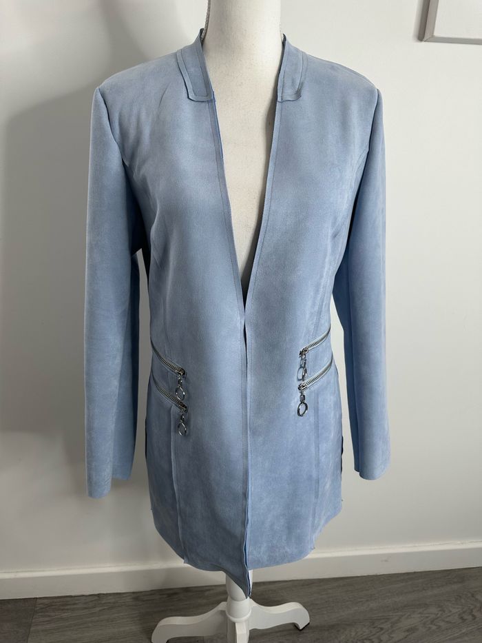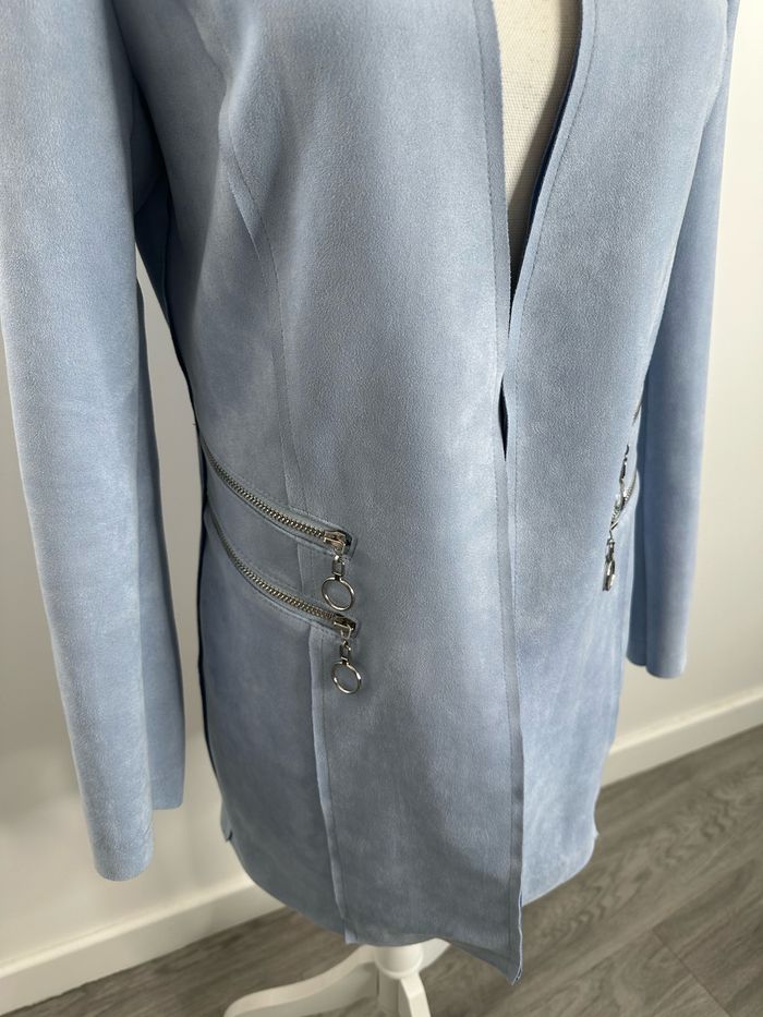 Blazer long en suédine bleu ciel et argenté T40 L - photo numéro 1