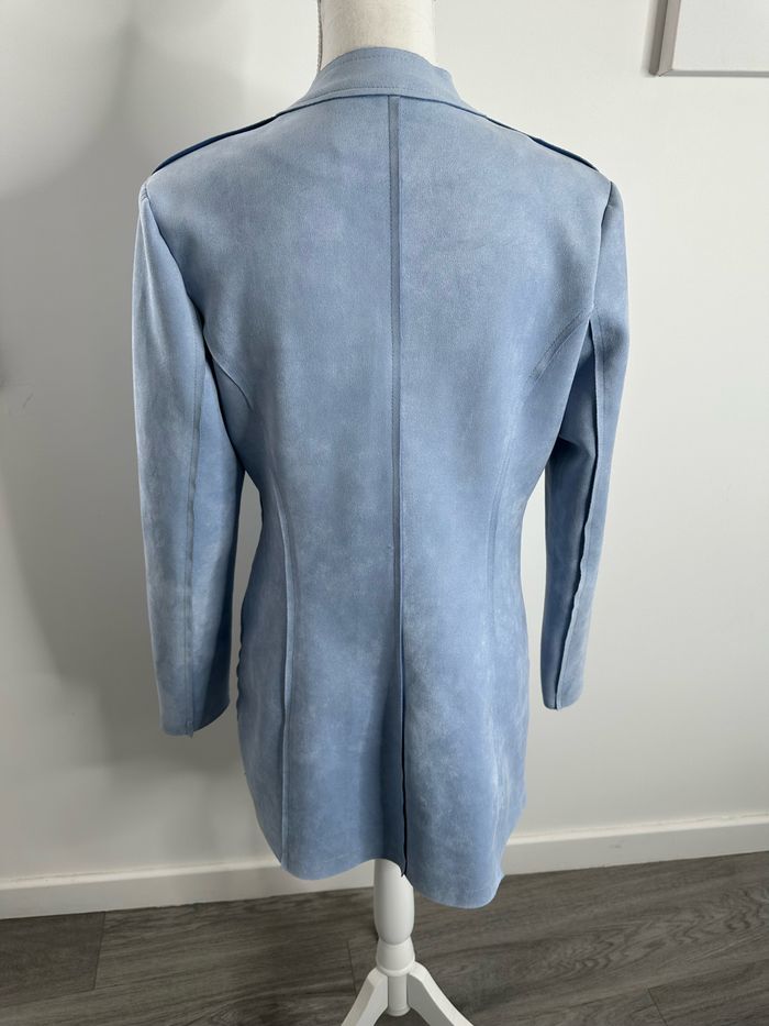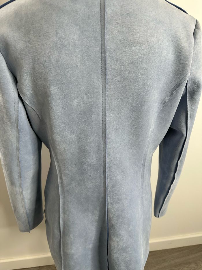 Blazer long en suédine bleu ciel et argenté T40 L - photo numéro 5
