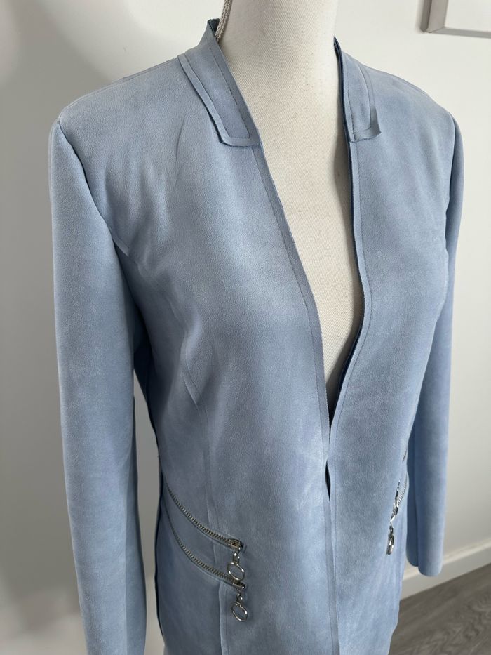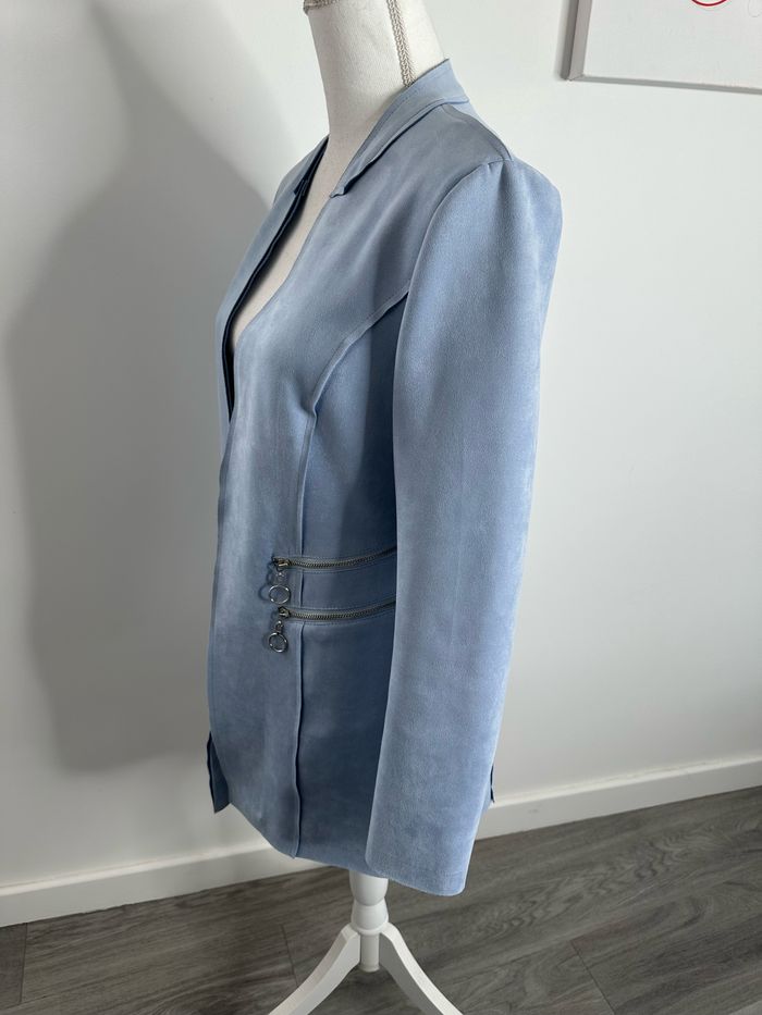 Blazer long en suédine bleu ciel et argenté T40 L - photo numéro 3