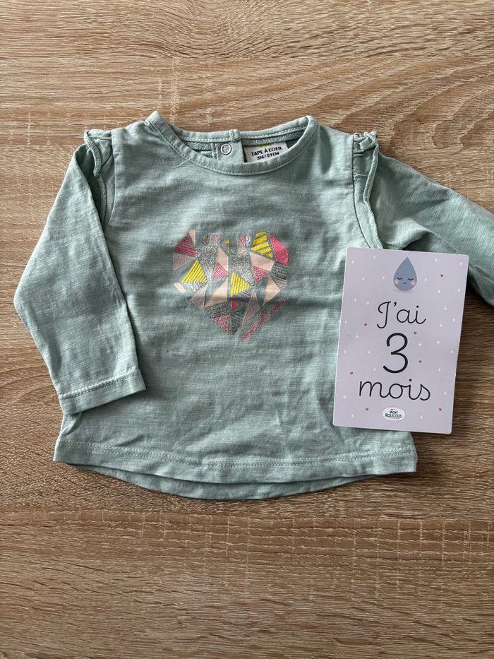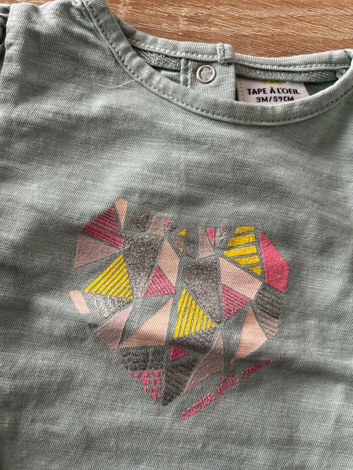 Tee shirt vert manches longues TAPE À L’ŒIL taille 3 mois