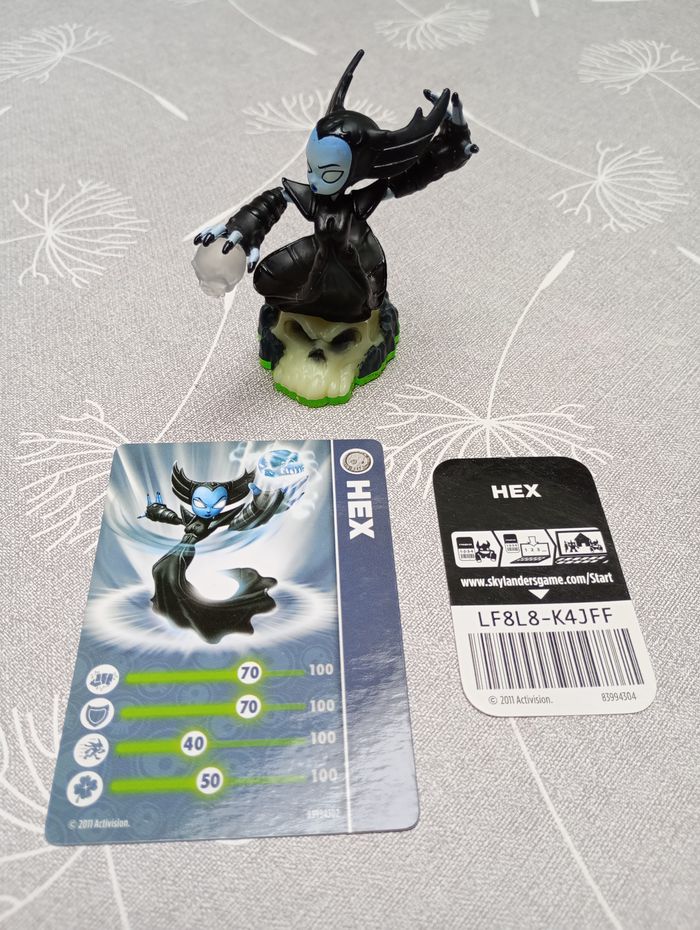 Figurine Hex de Skylanders. Avec carte et code. Très bon état.