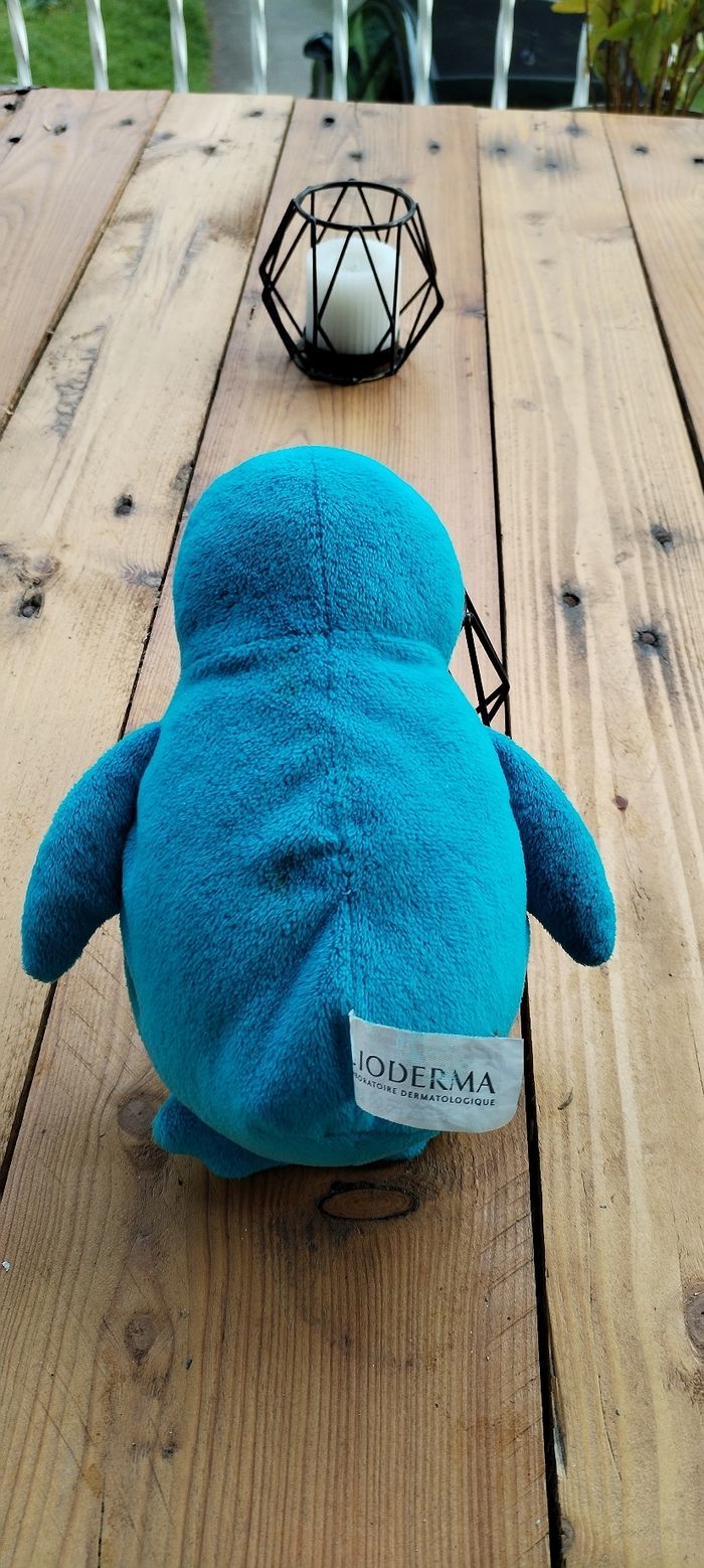 Doudou pingouin bleu et blanc pour bébés. Marque Bioderma. Comme neuf. Que mondial relais ou Relais Colis.