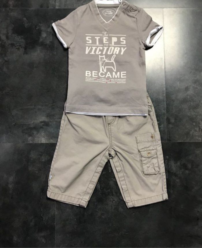 T-shirt streetgang et pantalon Obaibi beige 6 mois