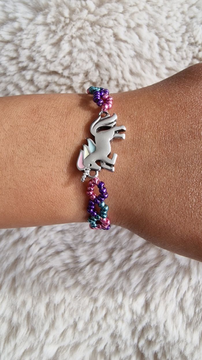 Bracelet thème multicolores licorne Marque Crystalia Perles comme neuf Pour enfant taille 15cm
