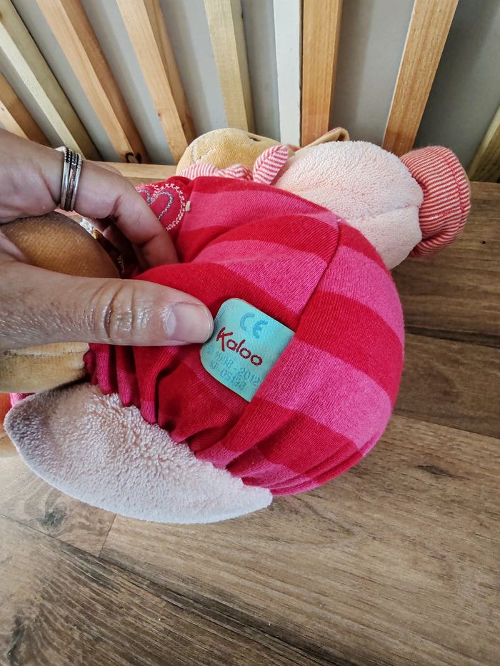 Doudou patapouf lapin KALOO éléphant fleuris rose rouge 30 cm environ Étiquette marque présente 25 euros Envoi en relais